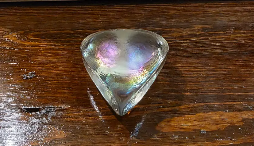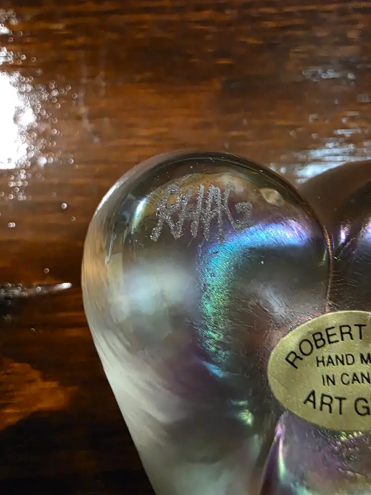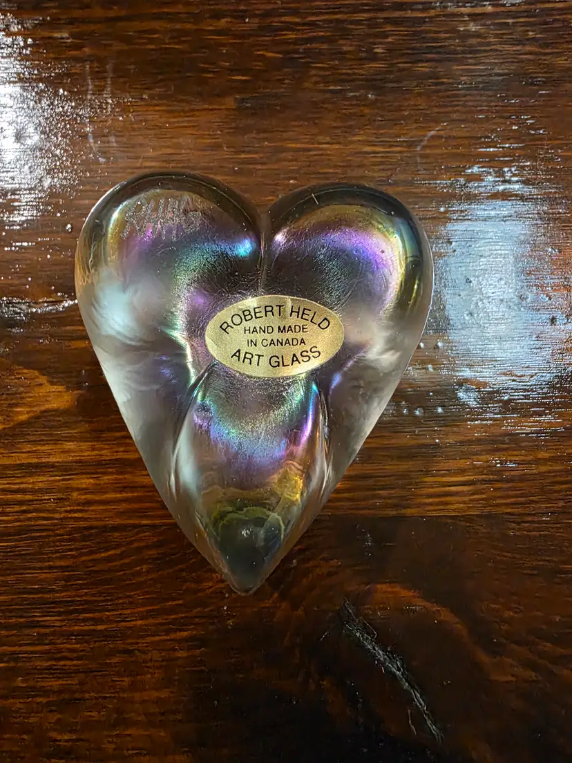 Vintage Hand made in Canada Robert Held Signed Clear Glass paperweight. Paperweight is in excellent condition with no chips or cracks and is approximately 2 inches width and 2.5 inches length and is approximately 1 inch thick. Very nice looking collective piece of art glass that has very smooth feeling to piece. Signed by Artist.