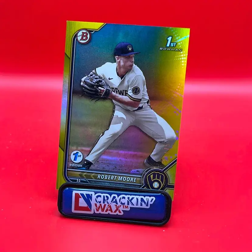 Robert Moore 2022 Bowman Draft 1st Edition Yellow Foil Parallel 21/75 Milwaukee Brewers