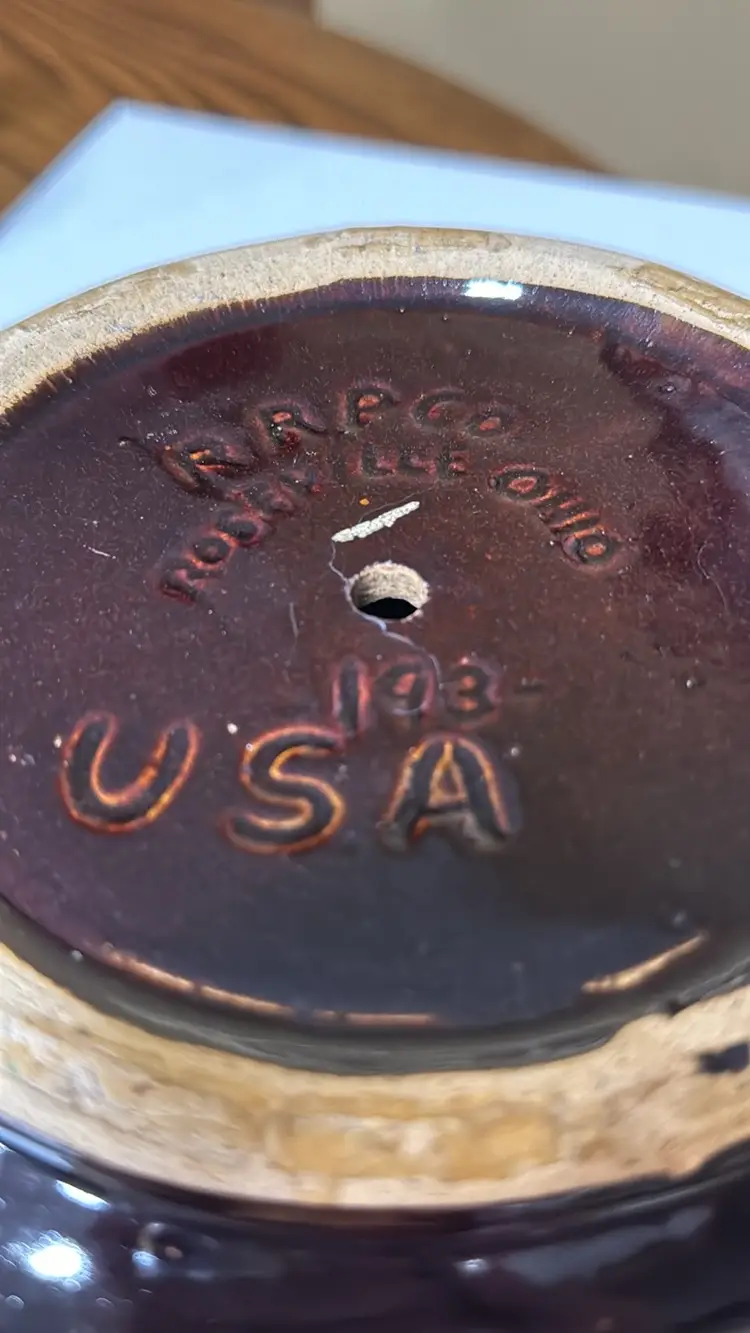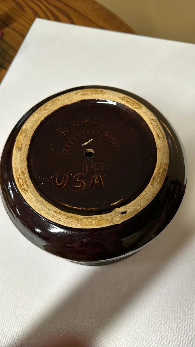 VTG Robinson Ransbottom Pottery Bowl RRP Co Roseville Ohio 193 Cuspidor/Planter basketweave pattern and glossy dark brown glaze 4.75” tall 7.5” diameter Heavy planter No breaks or chips (26529243)