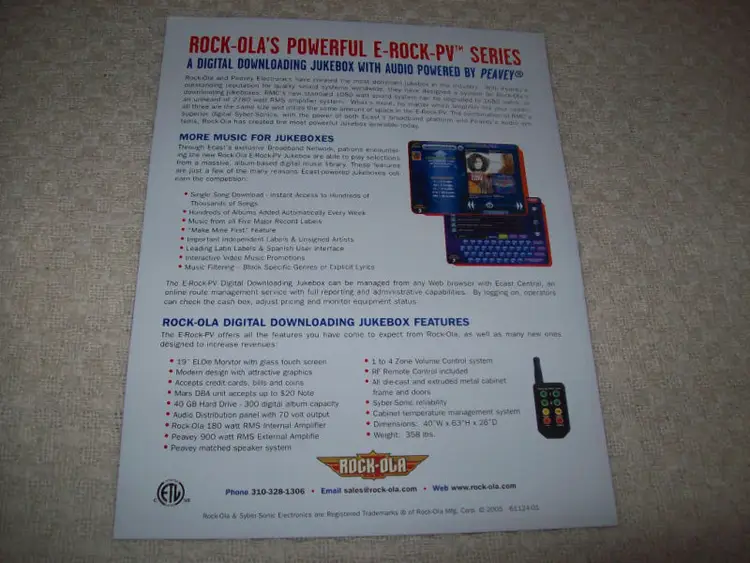 Country/Region of Manufacture: United States Original/Reproduction: Original Brand: Rockola Modified Item: No Jukebox: Flyer