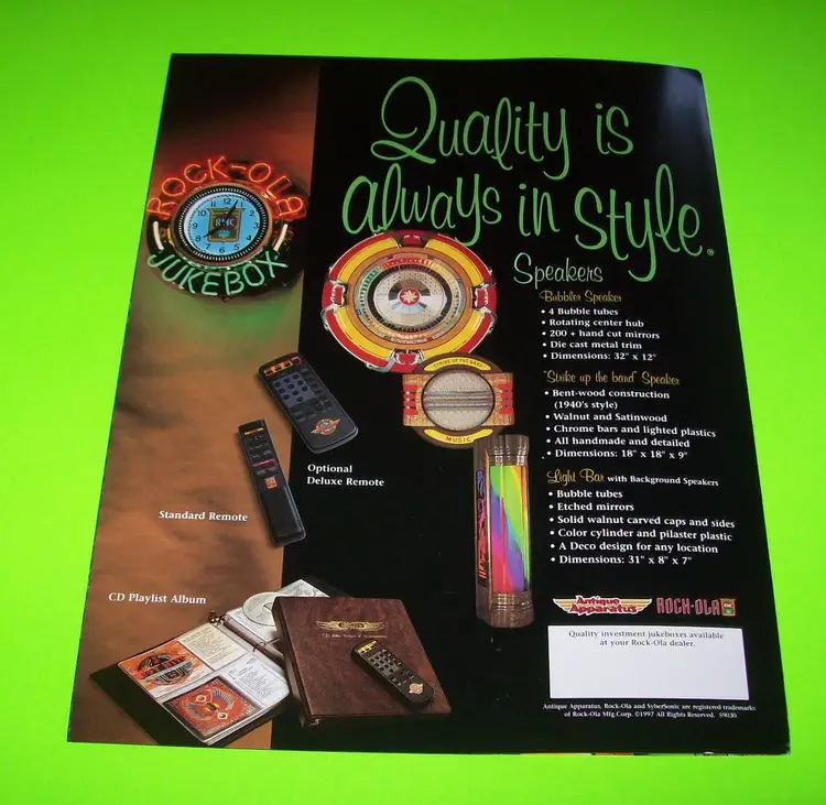 Jukebox: Flyer Modified Item: No Country/Region of Manufacture: United States Original/Reproduction: Original Year: 1997 Game Title: Nostalgia Brand: Rock-Ola