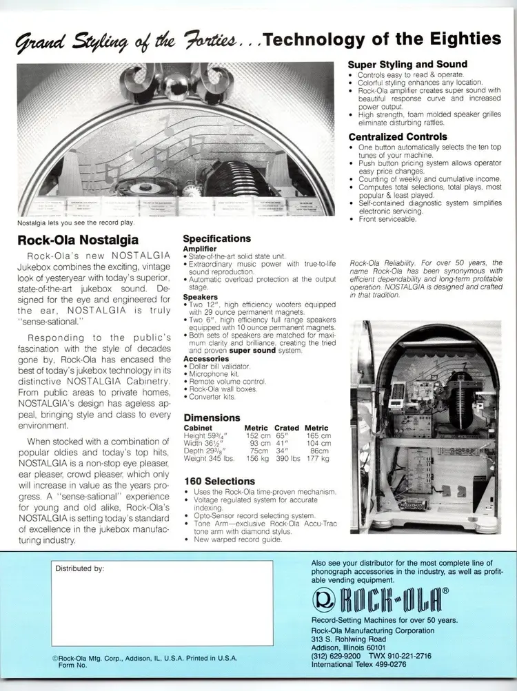 Brand: Rock Ola Jukebox: Flyer Year: 1987 Original/Reproduction: Original Country/Region of Manufacture: United States Modified Item: No