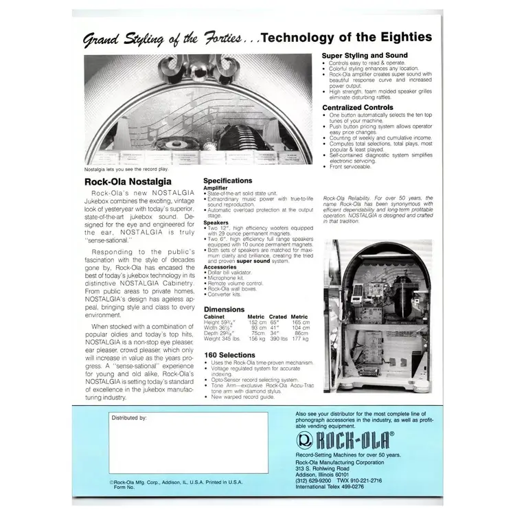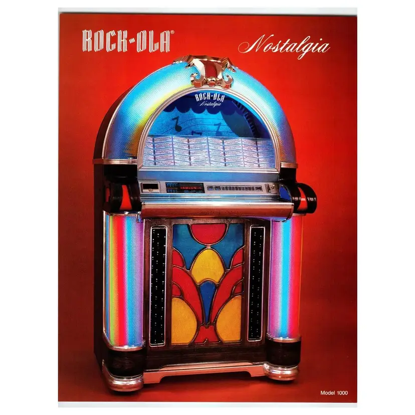 Original promotional sales flyer for the coin operated jukebox. Flyers are paper advertising literature also called a circular, brochure, or flier. All are single sheets unless noted otherwise. If there is artwork on the back side it will be shown. Size is 8.5" X 11". Near mint new old stock. Perfect for framing. Makes great wall art for the man cave or a unique gift idea. Plastic sheet protector included with each flyer sold. Orders are shipped with care.