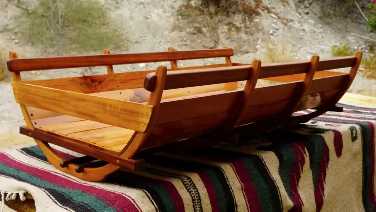 Cradle made with African Mahogany featuring bent laminations. Most of my work is custom, made to order. If you would like a similar piece, contact me to discuss style, material, budget, ideas and shipping options. Price below is an estimate for similar furniture.