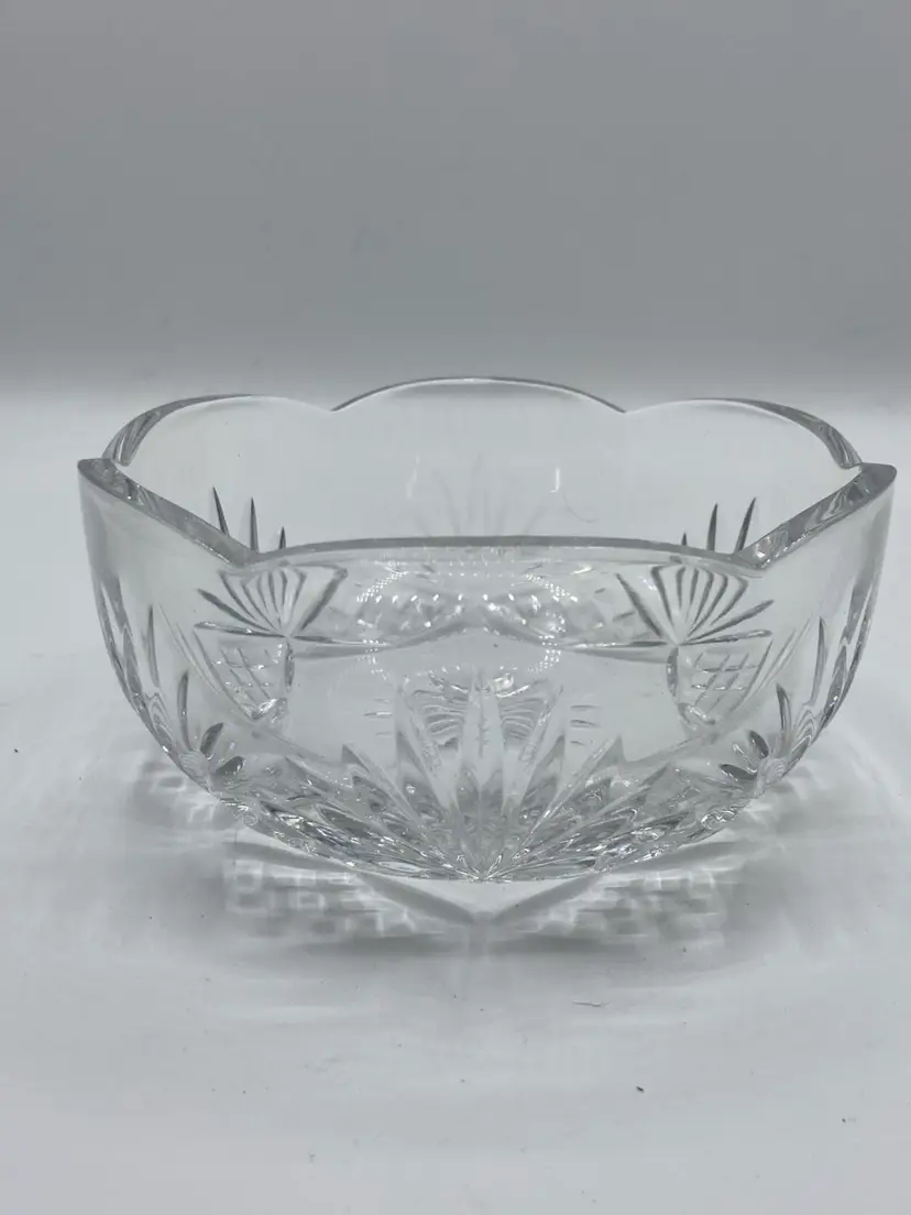 3” tall, 6” diameter. No chips or cracks. The Rogaska emblem is partially worn off.