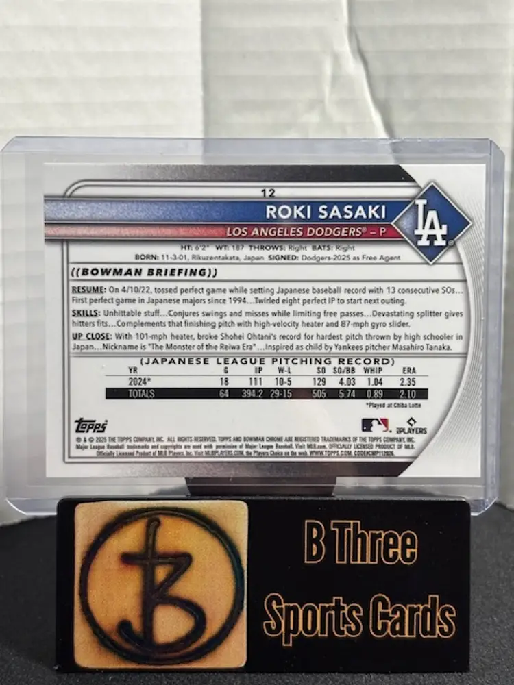 ROKI SASAKI 2025 Bowman Chrome Mega #12 RC Los Angeles Dodgers A1143