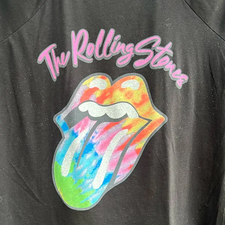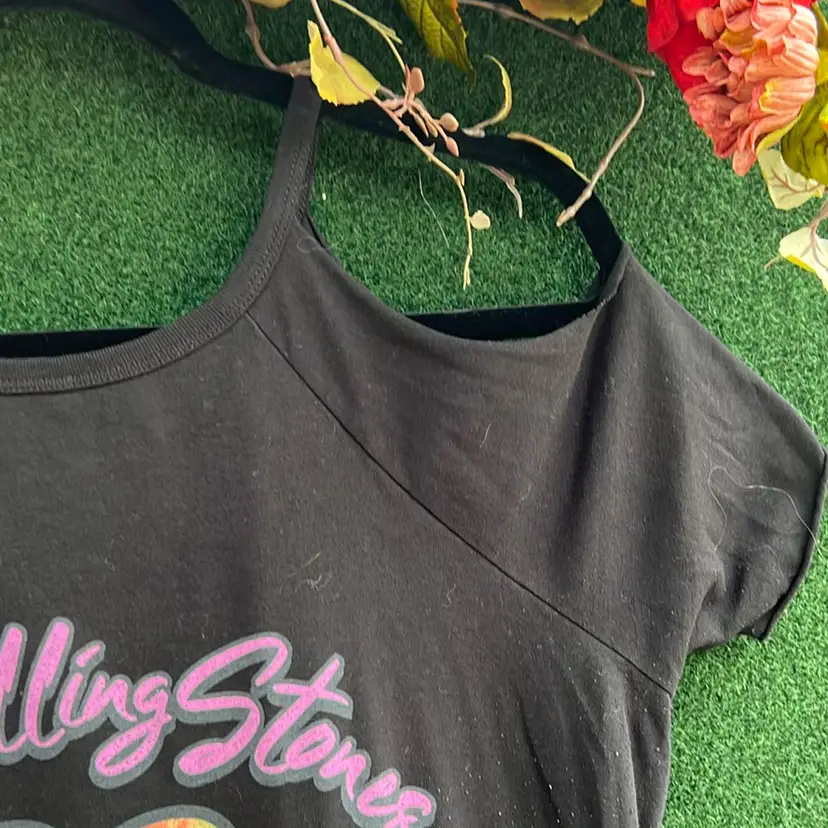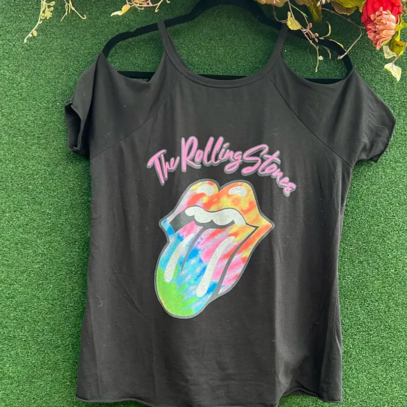 Rolling Stones rainbow cold shoulder T-shirt. Size double zero. Pit to pit is 21 inches length is about 23 inches.