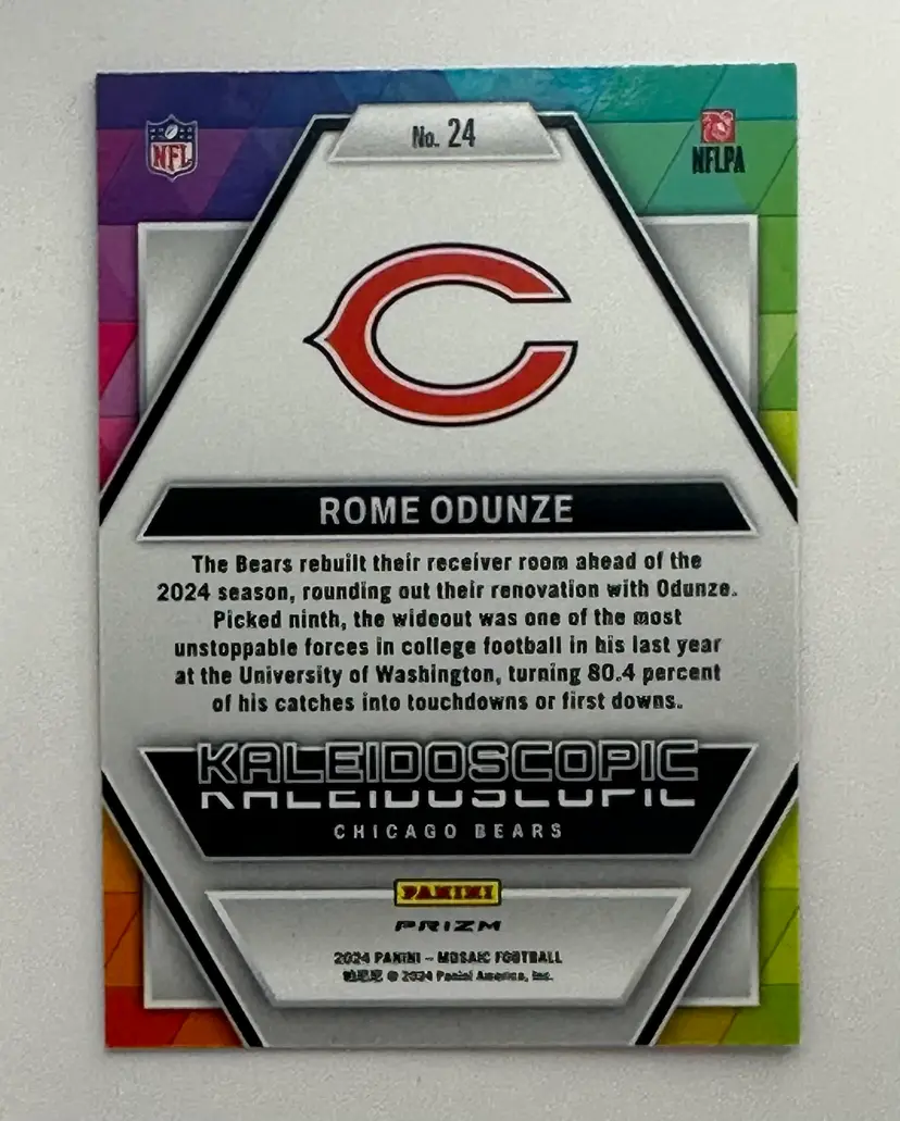 Snag this eye-catching Rome Odunze Kaleidoscopic rookie card. Perfect for any collection!
