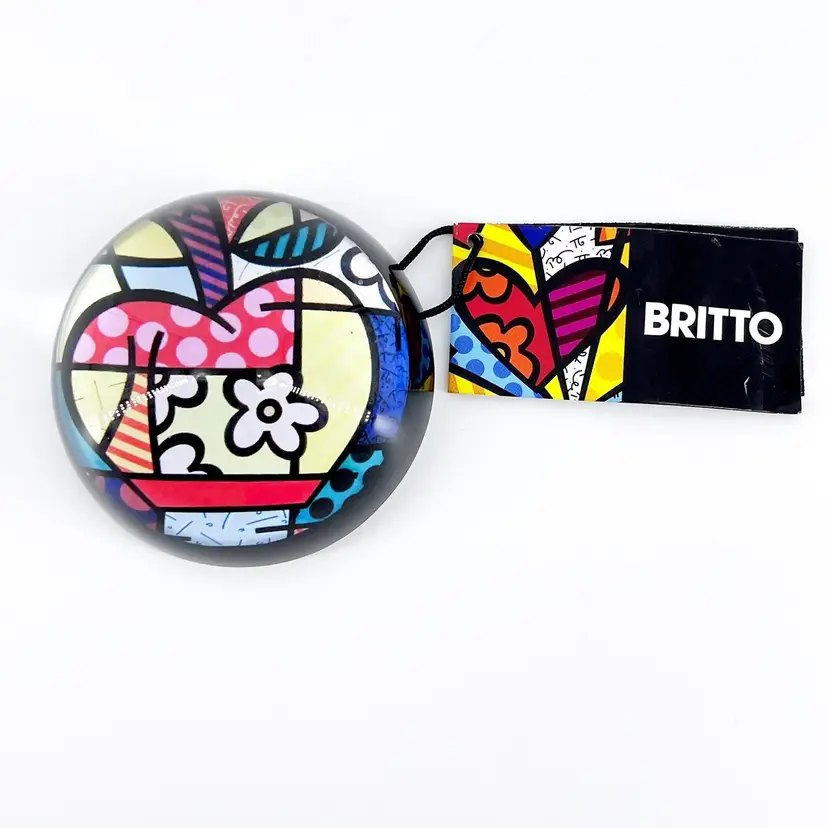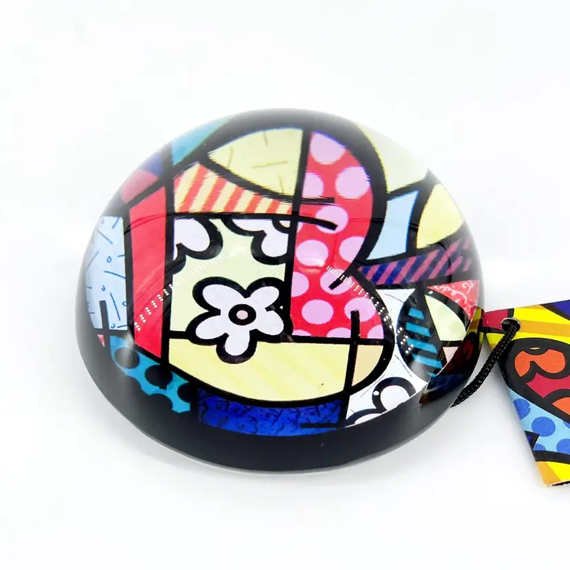 Romero BRITTO By Giftcraft Apple Design Glass Dome Paperweight With Tag