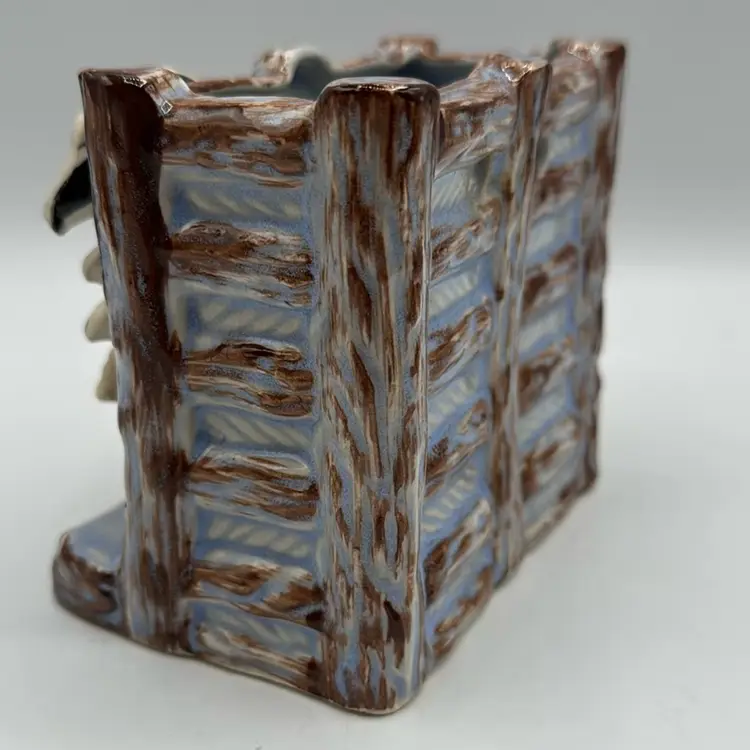 4” excellent condition no chips or cracks. Can sit as a planter or hang on the wall
