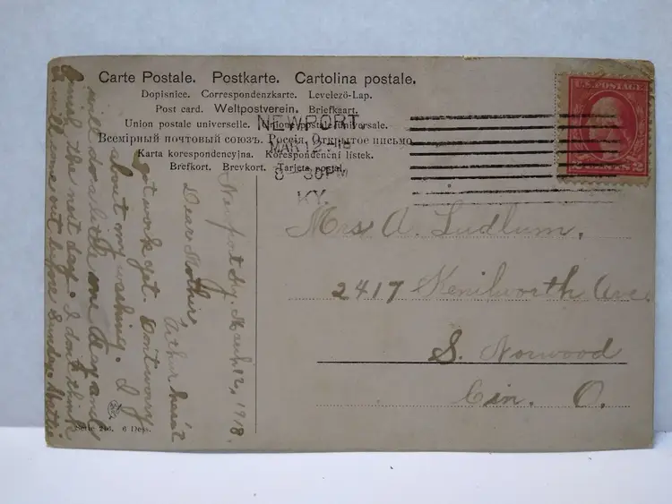 Posted with cancel and stamp. Series 216 postcard signed by artist A Muller. Has corner creases and age wear. Stock# an10.