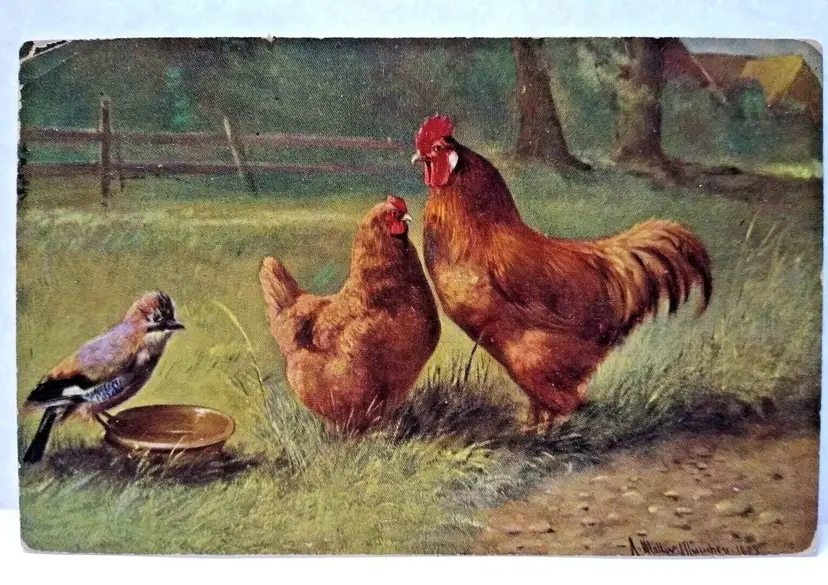 Size: Standard (5.5 x 3.5 in) Custom Bundle: No Personalize: No Type: Printed (Lithograph) Year Manufactured: 1907 Number of Items in Set: 1 Signed: Yes Original/Licensed Reprint: Original Signed By: Muller Occasion: Greetings Time Period Manufactured: 1900-1919 Unit of Sale: Single Unit Era: Divided Back (1907-1915) Artist: Muller Country/Region of Manufacture: Germany Material: Paper Theme: Wildlife, Nature, Roosters, Animals, Art, Greetings, Chickens, Bird, Farm Features: Divided Back Subject: Rooster Postage Condition: Posted Brand/Publisher: H. K. & Co. M. Franchise: None