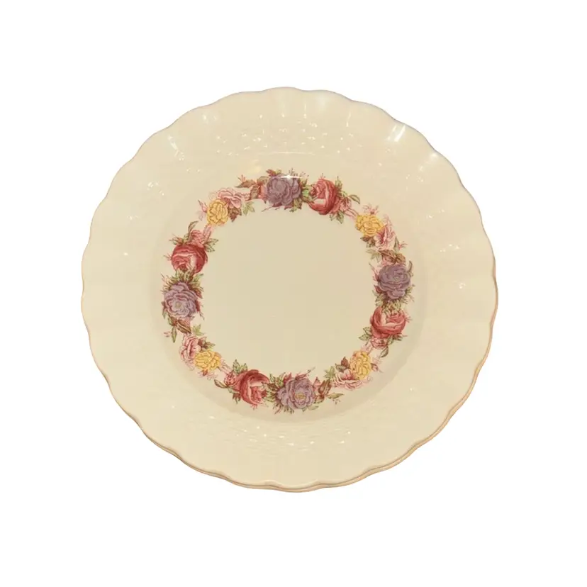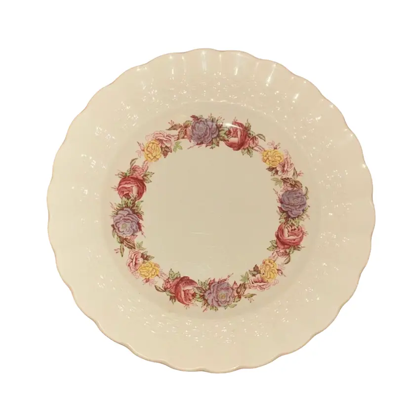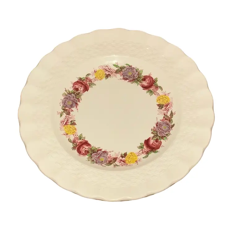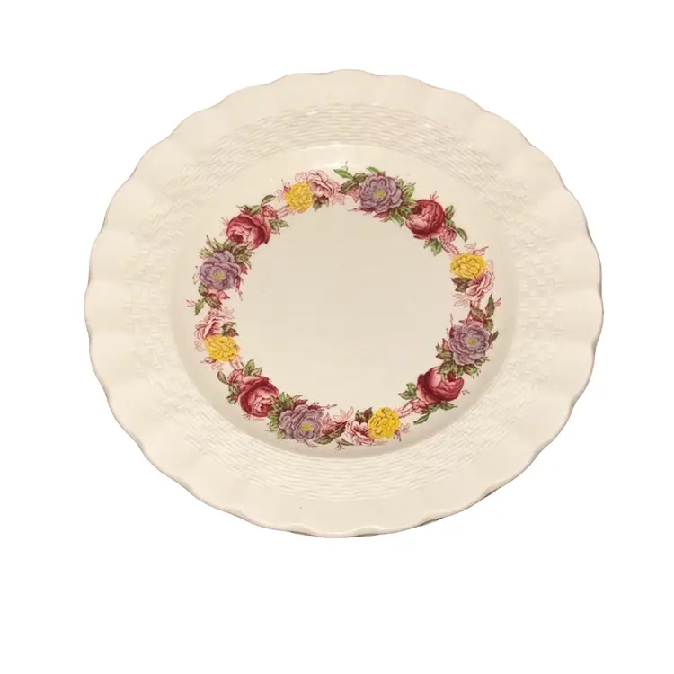 Classic Rose Briar Pattern: The plate features a delicate floral band with roses, set against a Chelsea wicker shape, adding a touch of vintage charm to any table setting.