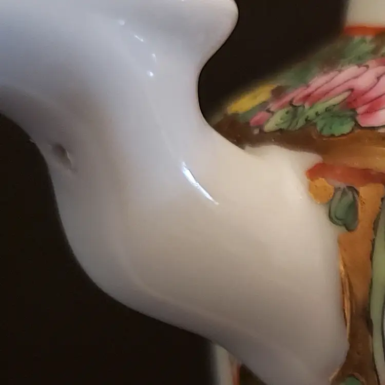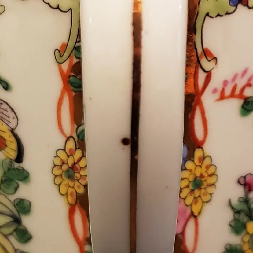Good vintage pre-owned condition. Stray paint drop on handle and pin hole in porcelain under handle. . No chips or cracks. Please see pictures for more details.