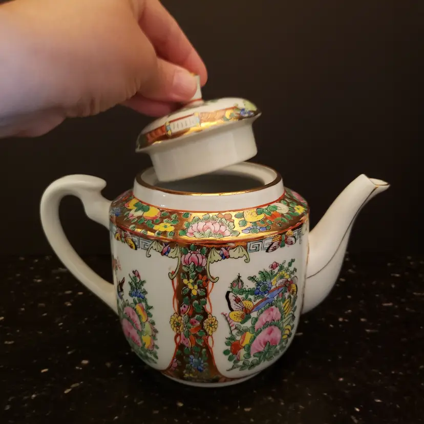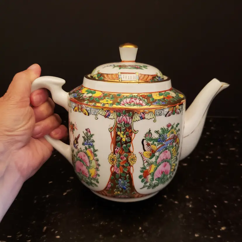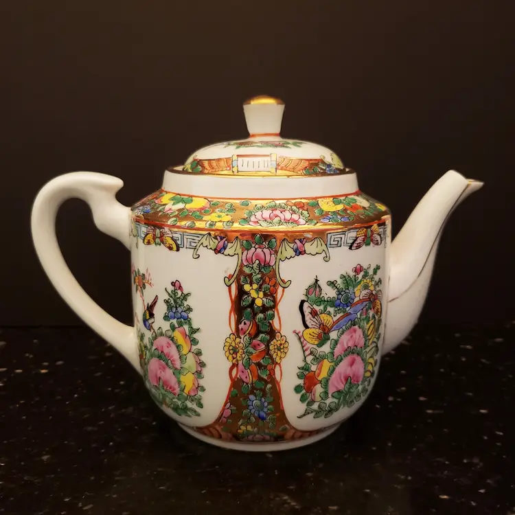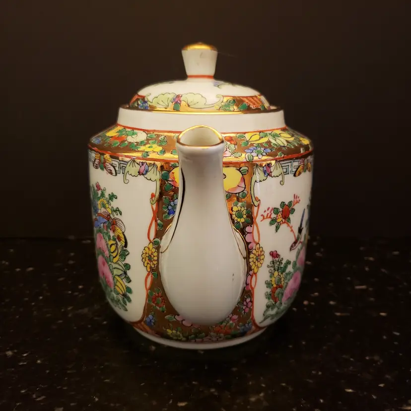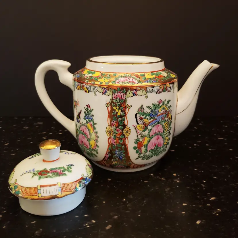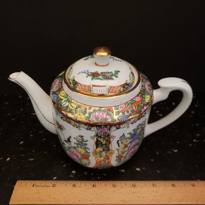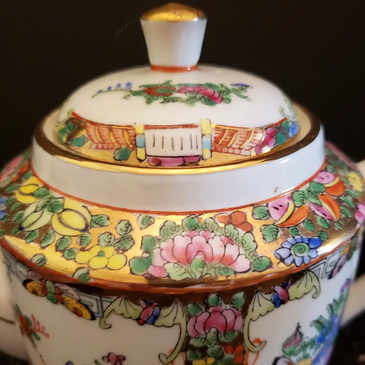 Rose Medallion Teapot Famille Rose Cantonese Vintage Chinese