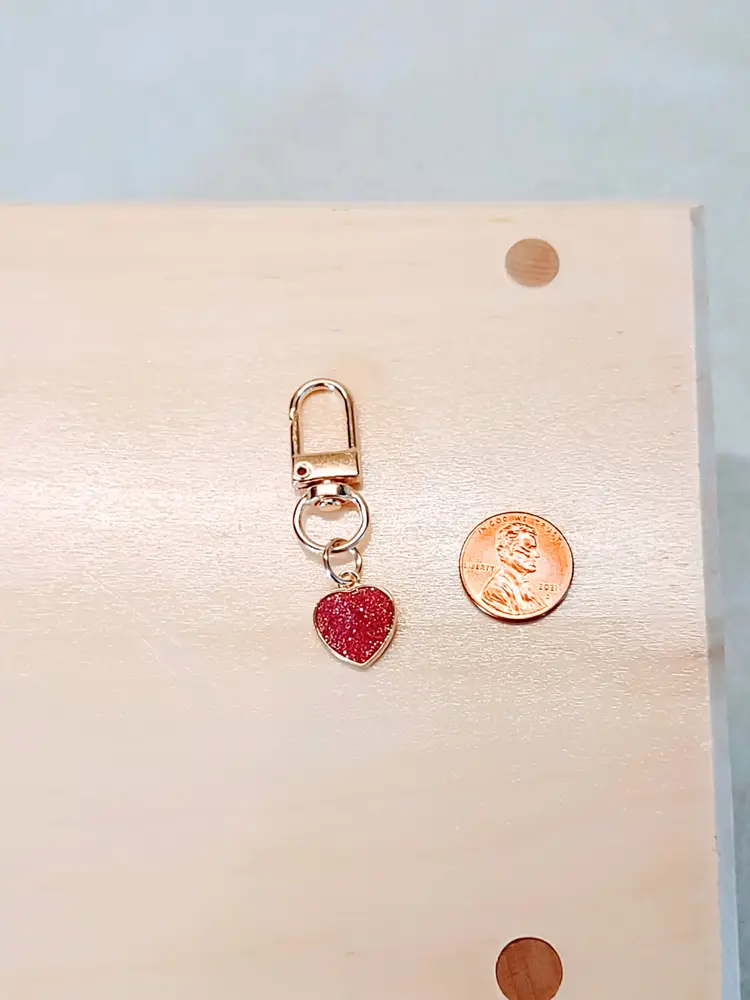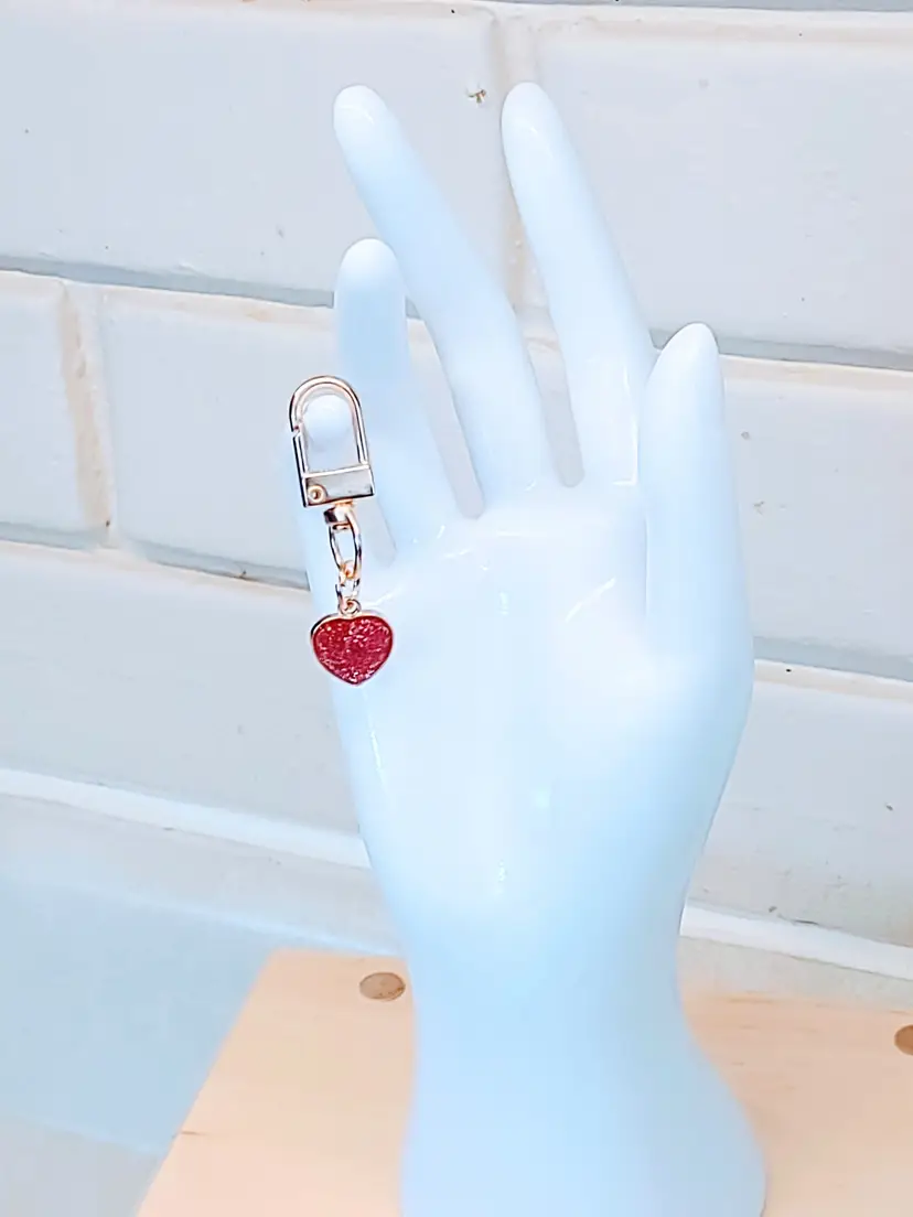 This Rose Pink Glitter Enamel Heart & Brass Bag Charm or Zipper Pull Charm is a handmade accessory perfect for women who love a touch of sparkle in their style. The charming piece features a glitter pattern on a pink enamel heart, set on a brass base. With a detachable design, this S-sized charm can be easily added to bags or zippers for a personalized touch. Made in the United States, this unique charm exudes a love-themed style that adds a whimsical flair to any outfit.