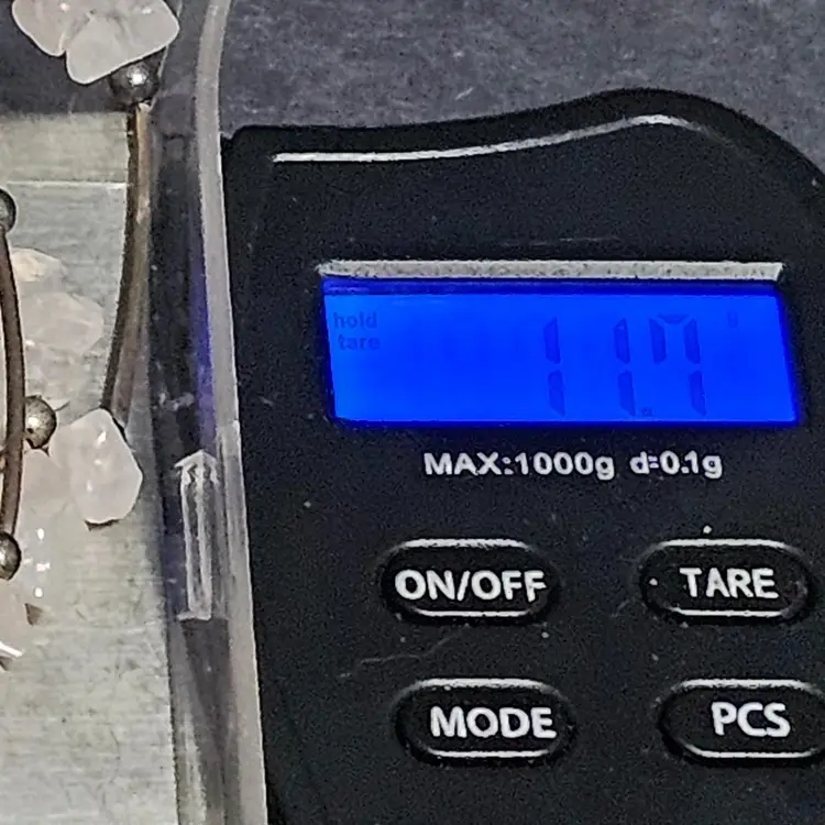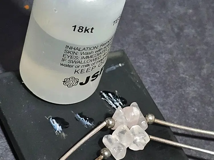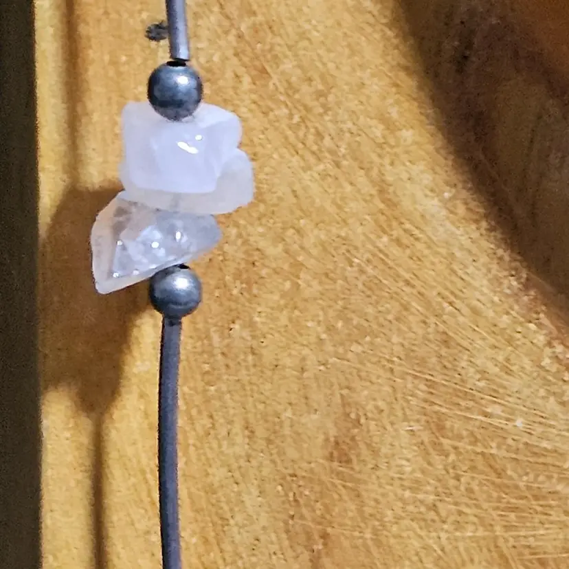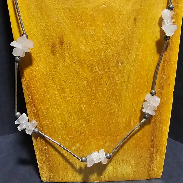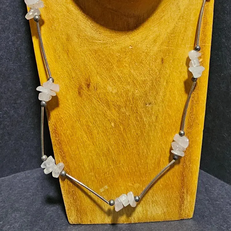 3 pink quart chips in 1 1/4" apart from each other. The divider rods tested positive to be Sterling Silver. The lenght of this piece is 17" long. If you have any questions please feel free to message me! 🦊Have A Wonderful Foxy Stang Day!!!🦊