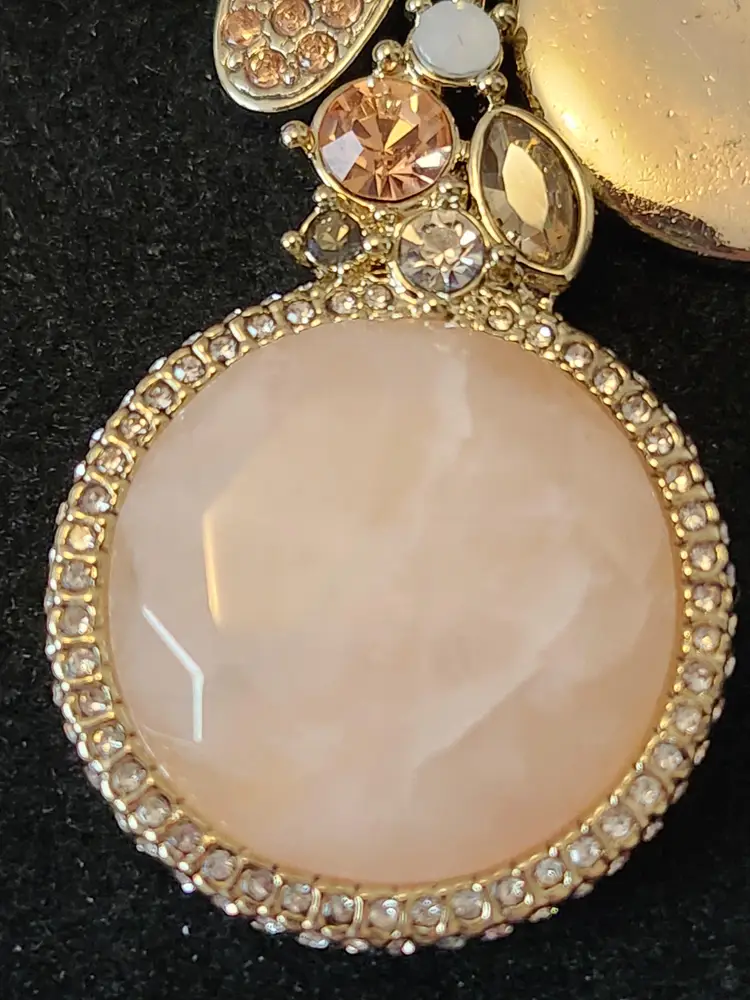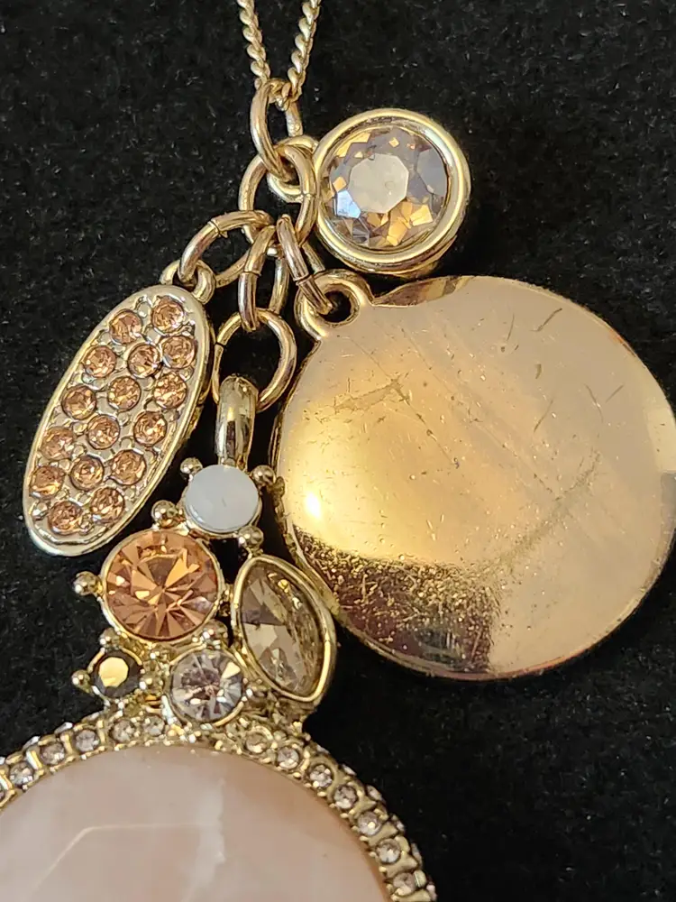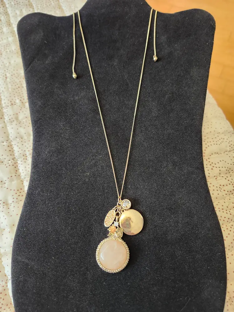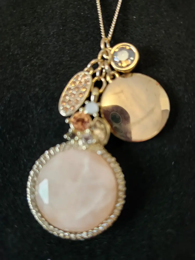 Has 4 pendants on the adjustable chain.rose quartz pendant being the biggest