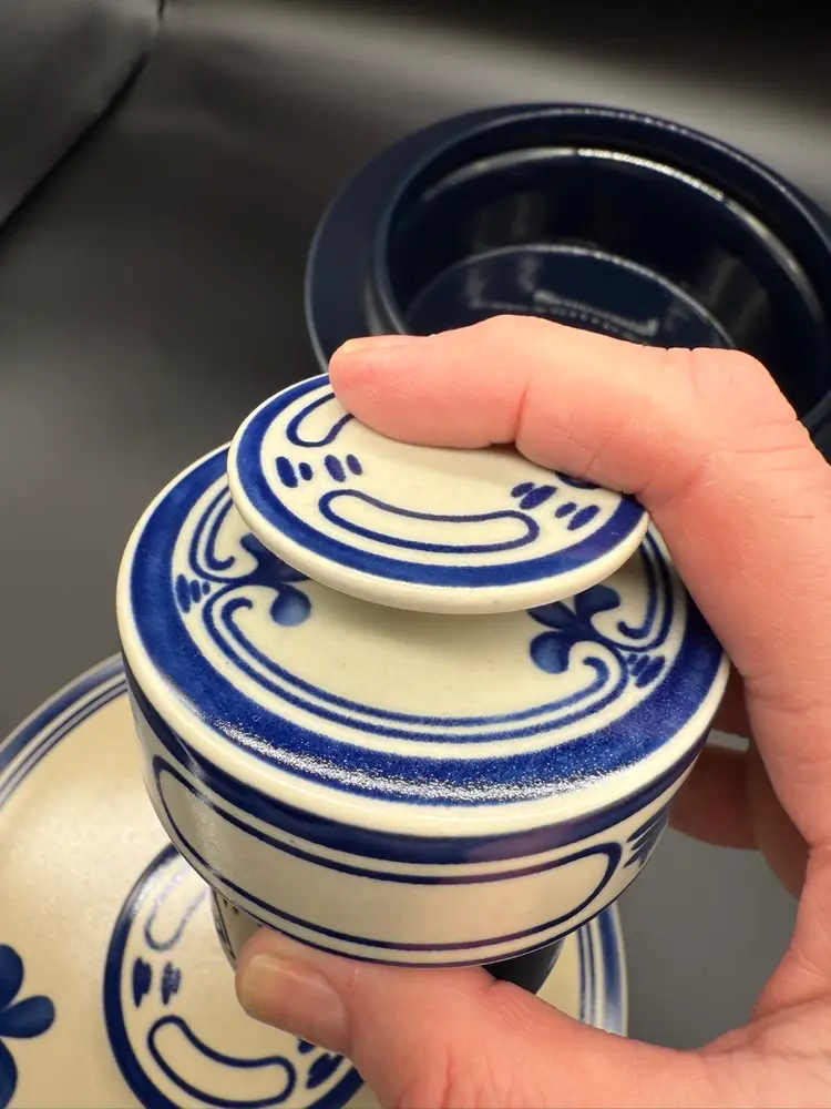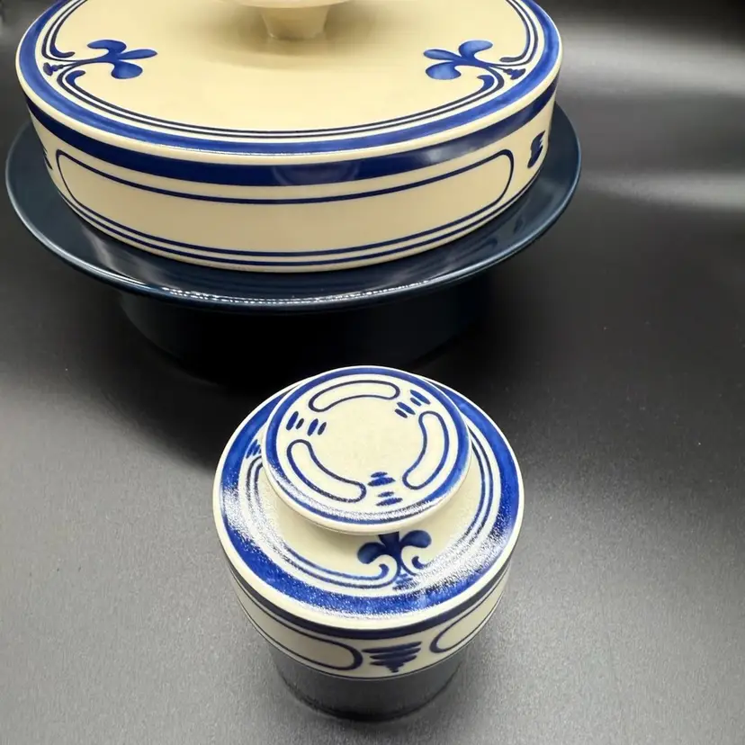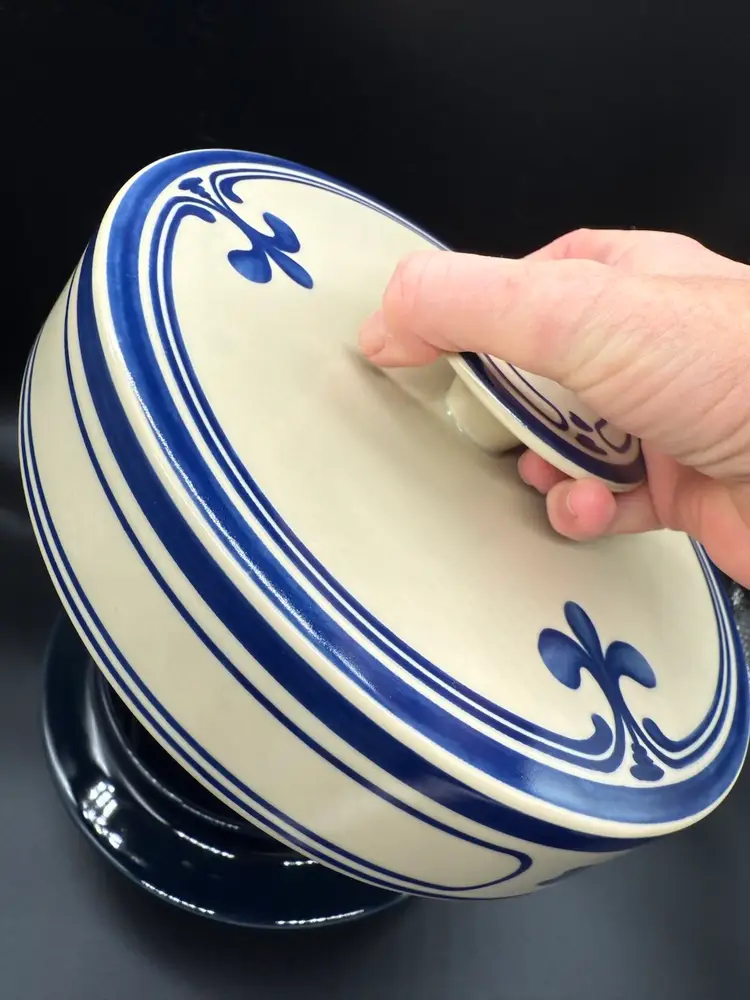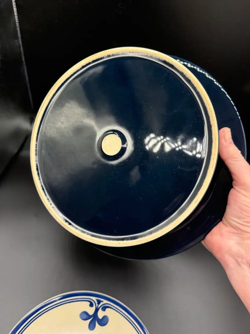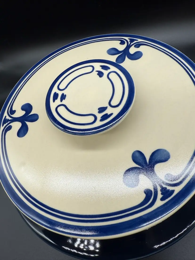 Rosenthal Blue Siena Pattern 2.25Qt. Casserole with lid in excellent condition. Pictured here with lidded sugar bowl free with purchase. Sugar bowl has a condition issue. See photo. Nob on lid of sugar was repaired. Delicate ornamentation on a cobalt blue and white contrast on a slightly translucent porcelain that emphasizes the design features... stunning!