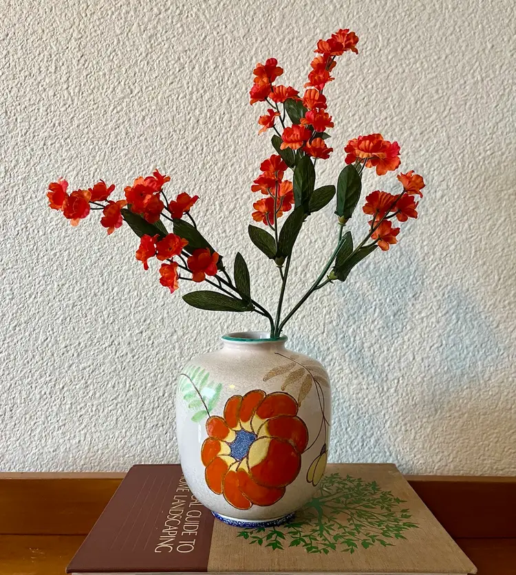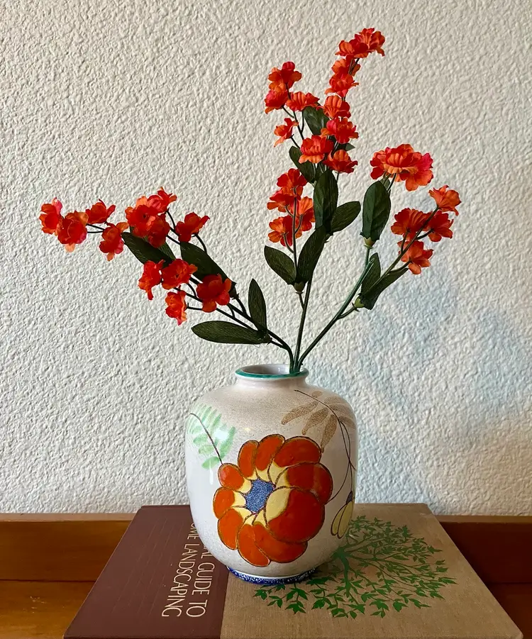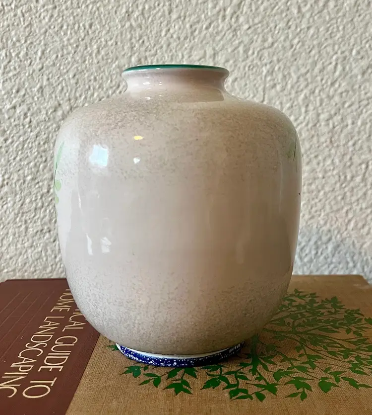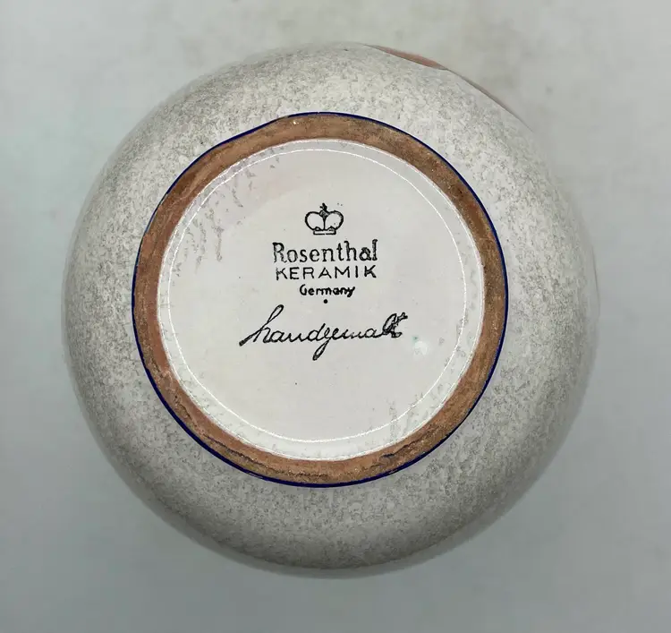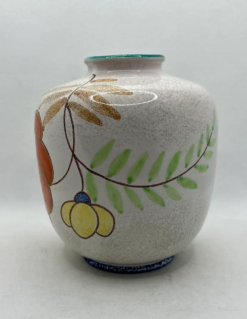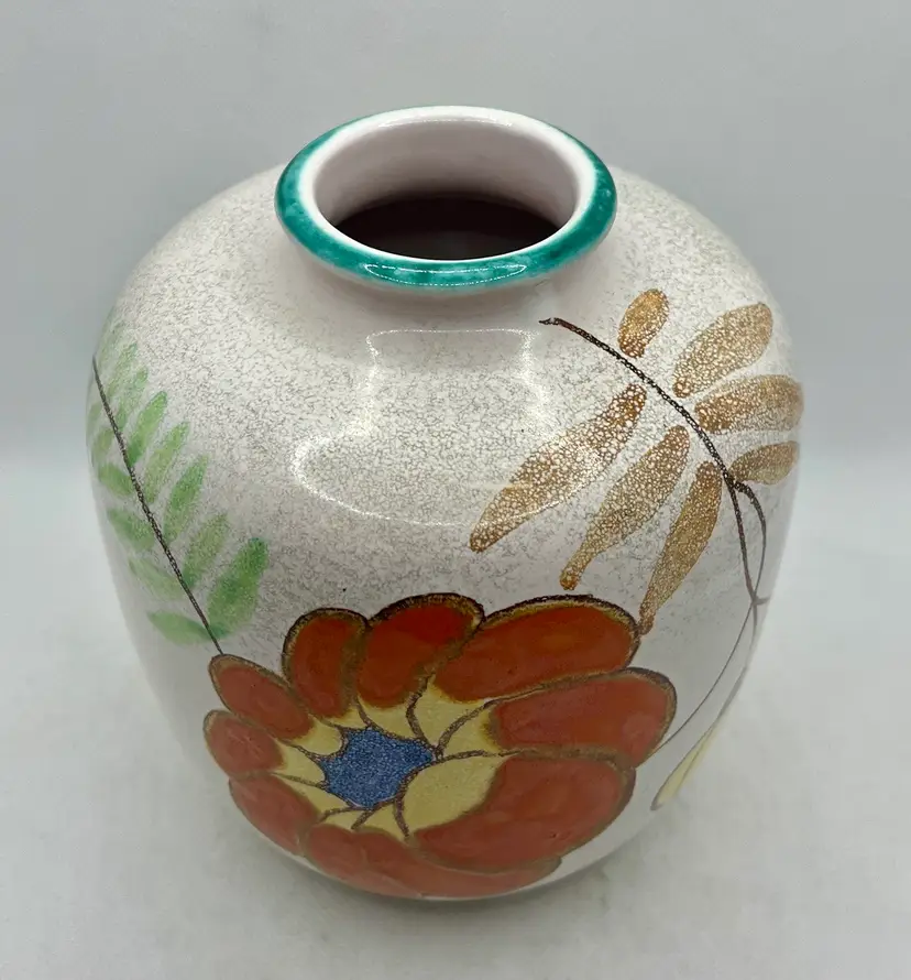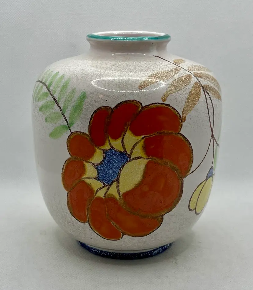 Rosenthal Germany Ceramic Handmade Pottery Orange Floral Vase. C 1938-1940 by back-stamp. EUC with minor surface wear and crazing. No chips or cracks.