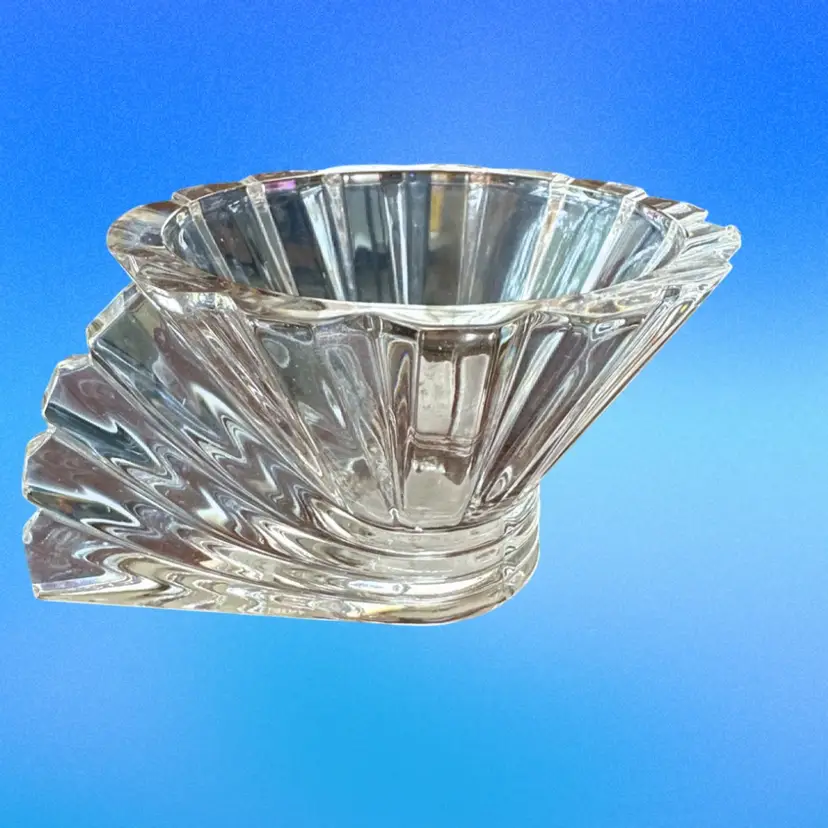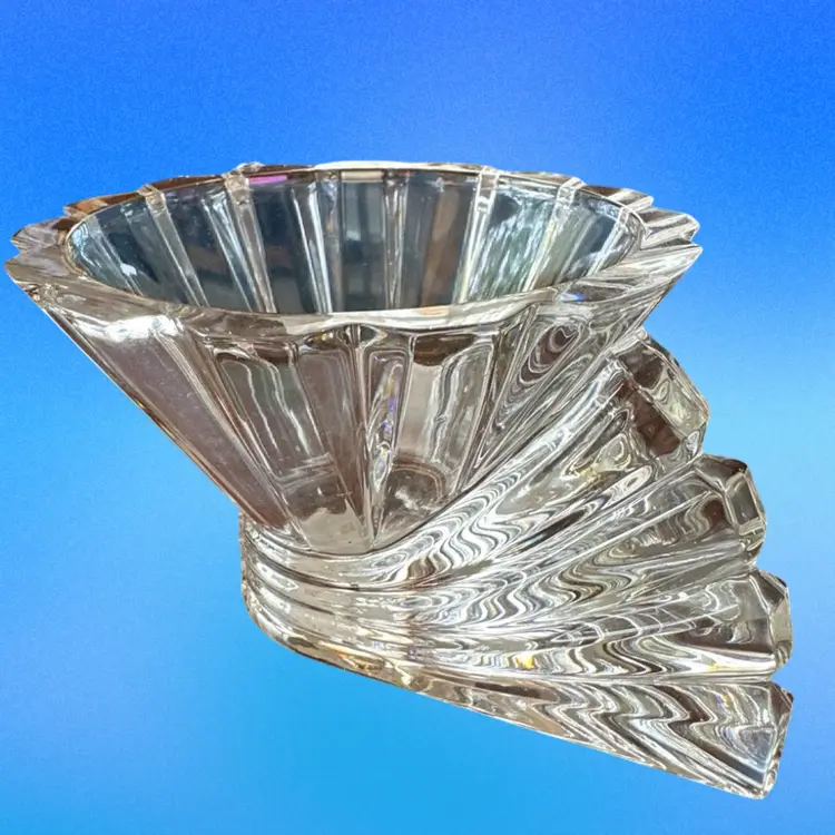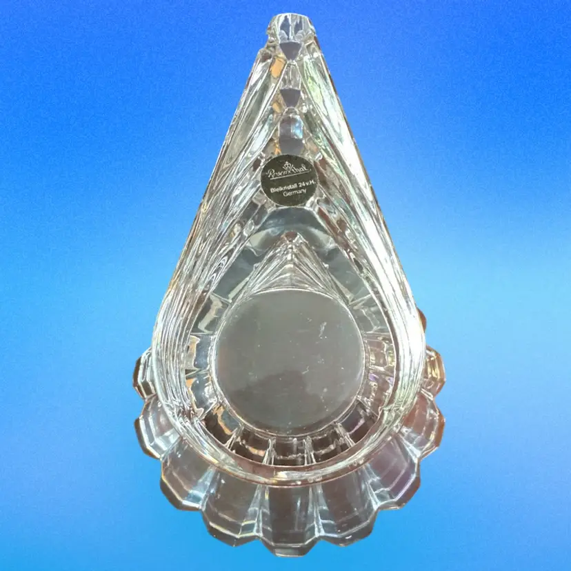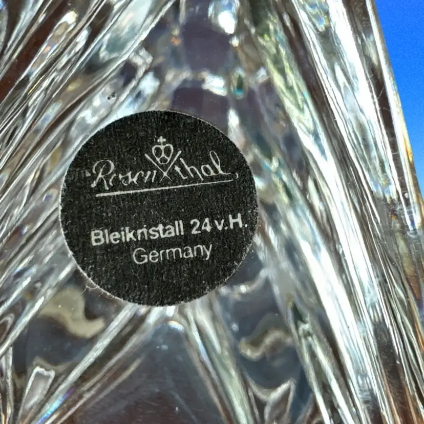 This Rosenthal Studio Line Germany 24% Lead Crystal Art Deco Votive Candle Holder. Made in Germany, this clear crystal candle holder features an abstract pattern in Art Deco style, adding a touch of sophistication to any room. The 24% lead crystal material gives it a luxurious and high-quality feel, making it suitable for use with votive candles to create a warm and inviting ambiance.