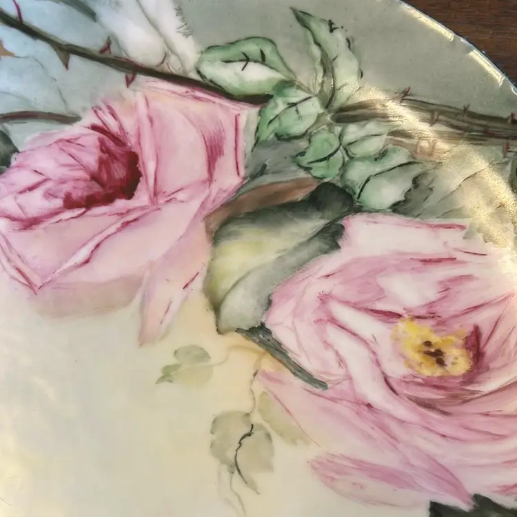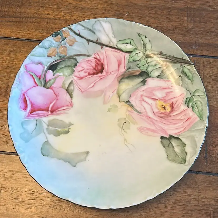 This Rosenthal Versailles Bavaria plate has hand painted pink roses. It is about 8 3/4 inches wide.