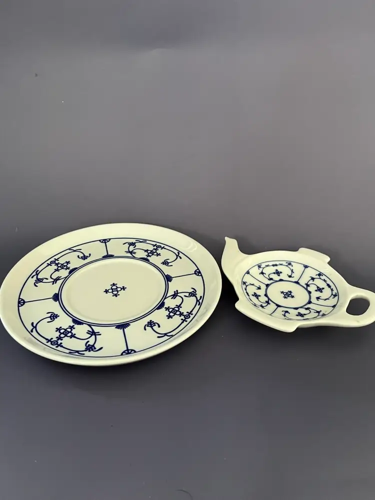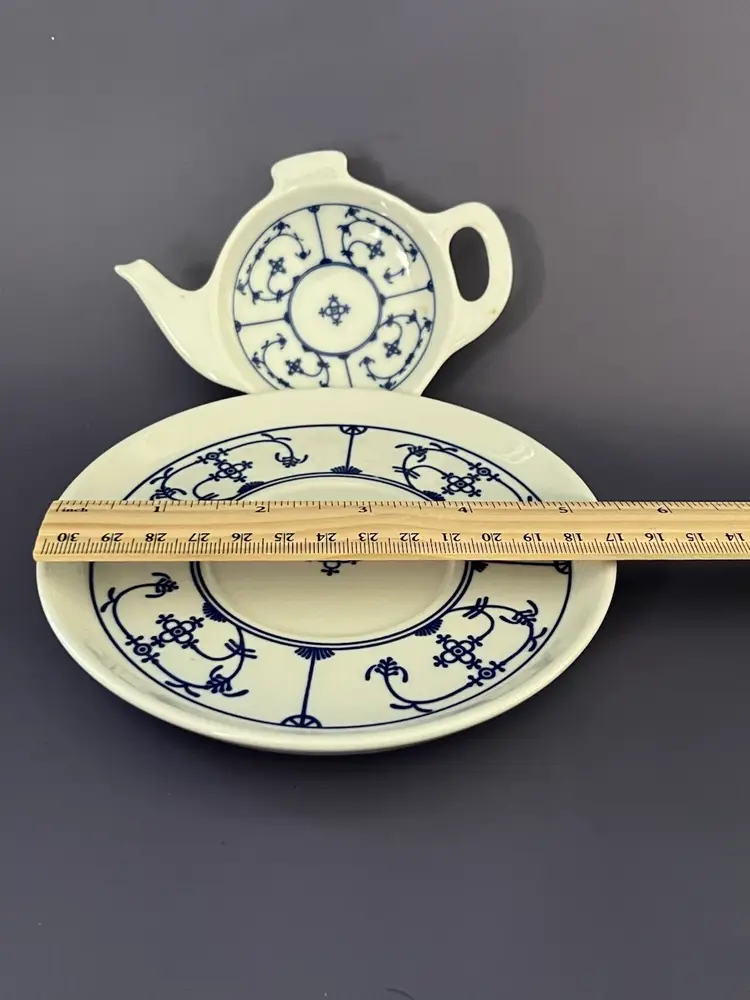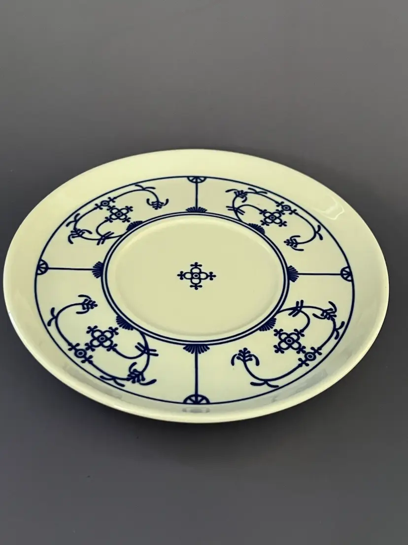 This patter is called Winterling Blue Strawflower and is delightful. Made in Bavaria these porcelain pieces can be displayed or used at tea time. The blue and white patter blend well with all decors. Sweet and usable.