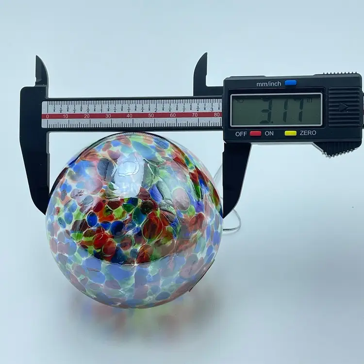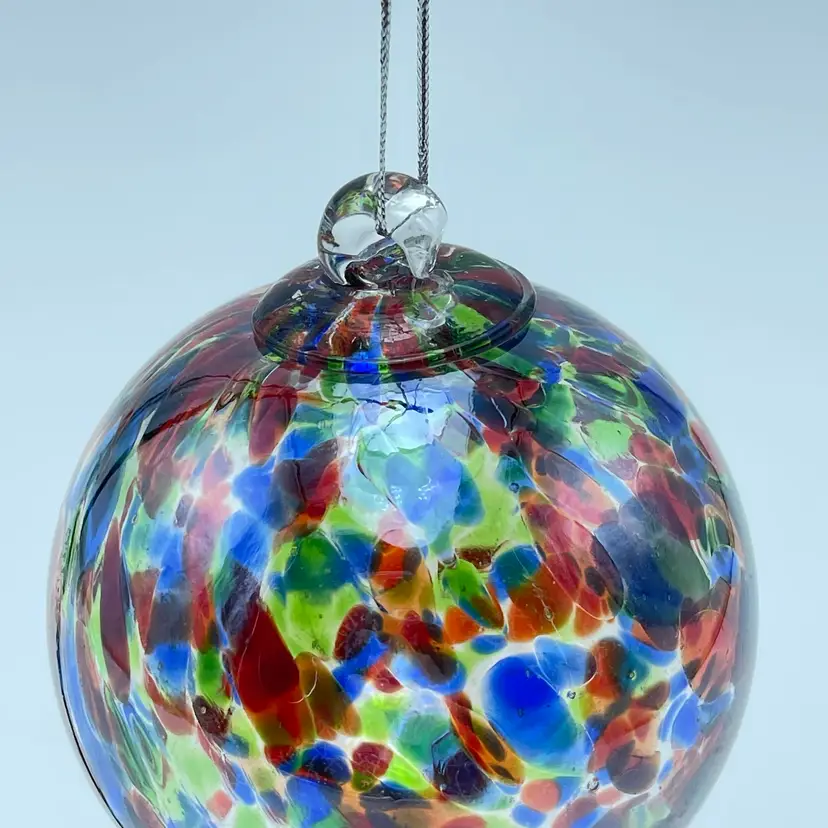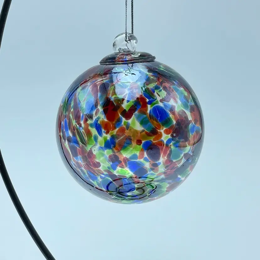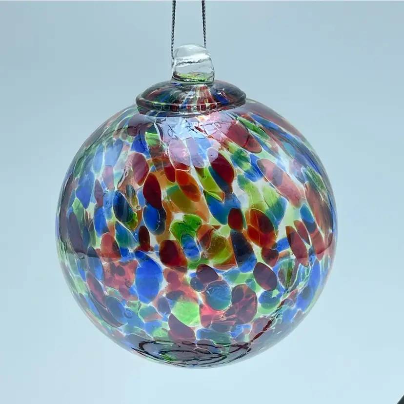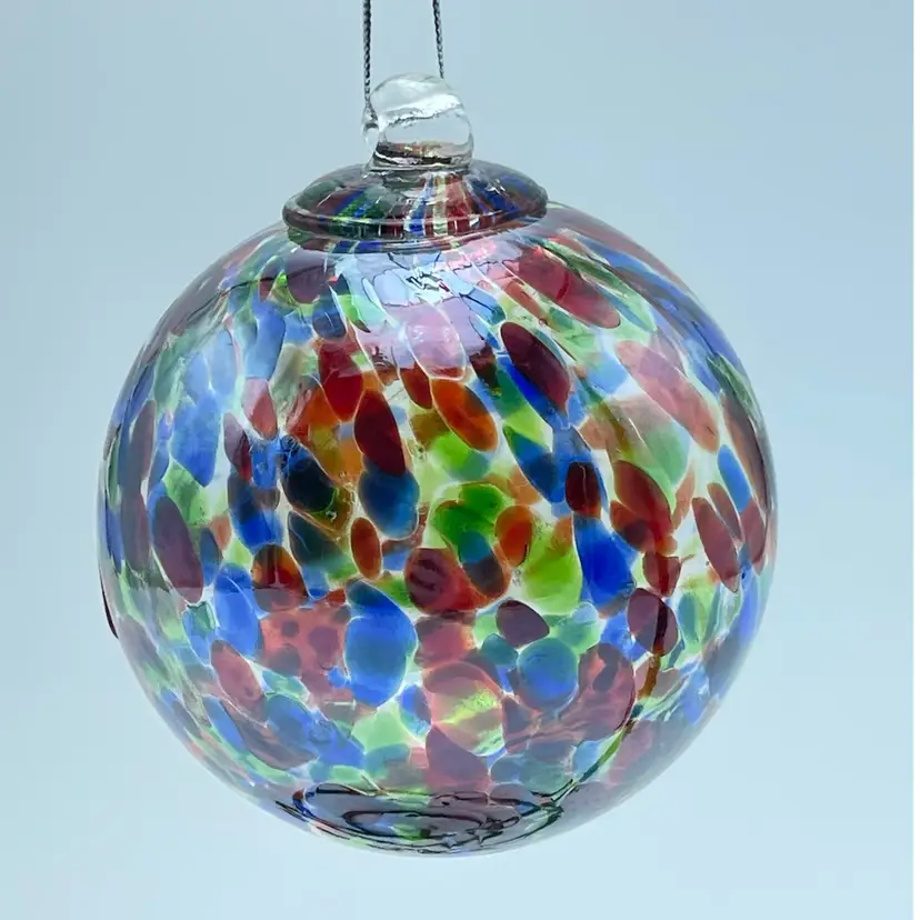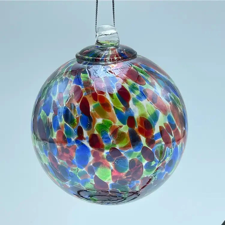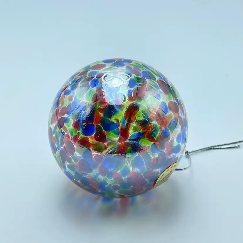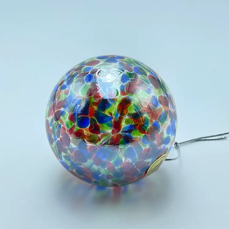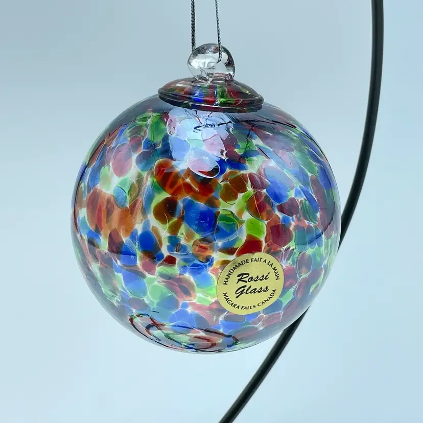 This is a handblown Rossi Niagara Falls Glass multi colored confetti hanging ornament with original label. Made in Canada. Measures approximately 3.17" in diameter. No chips or cracks.