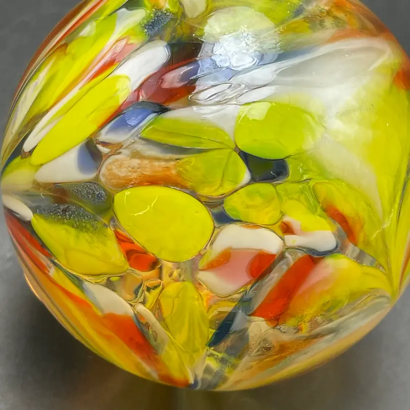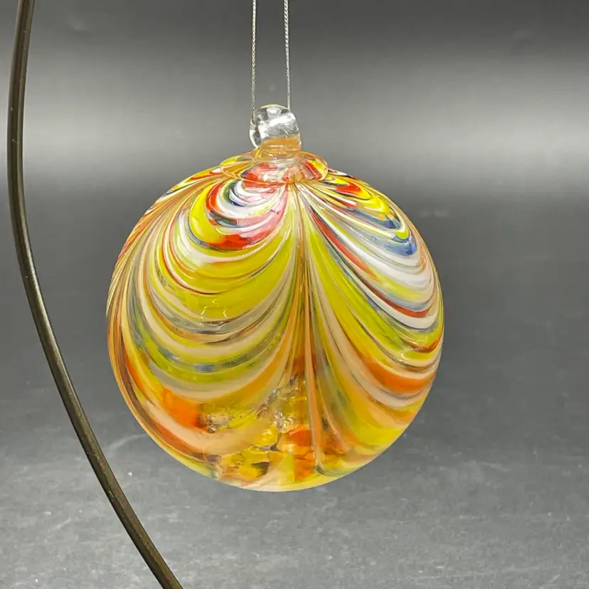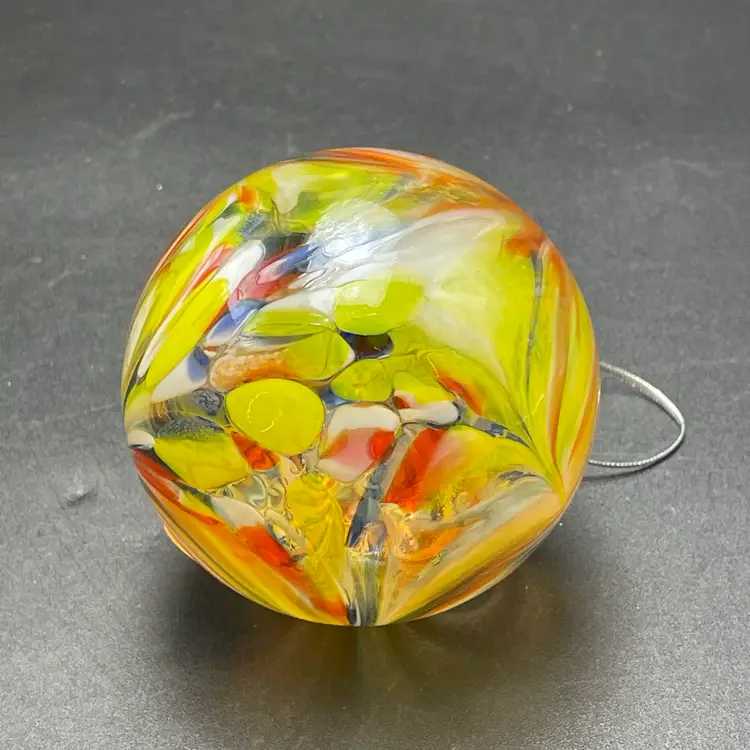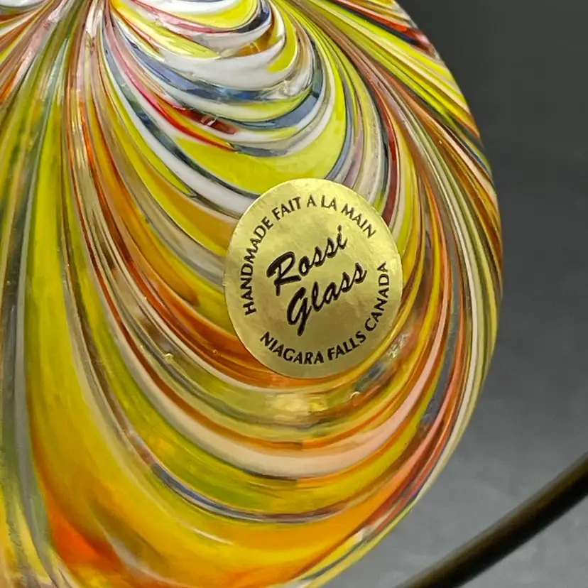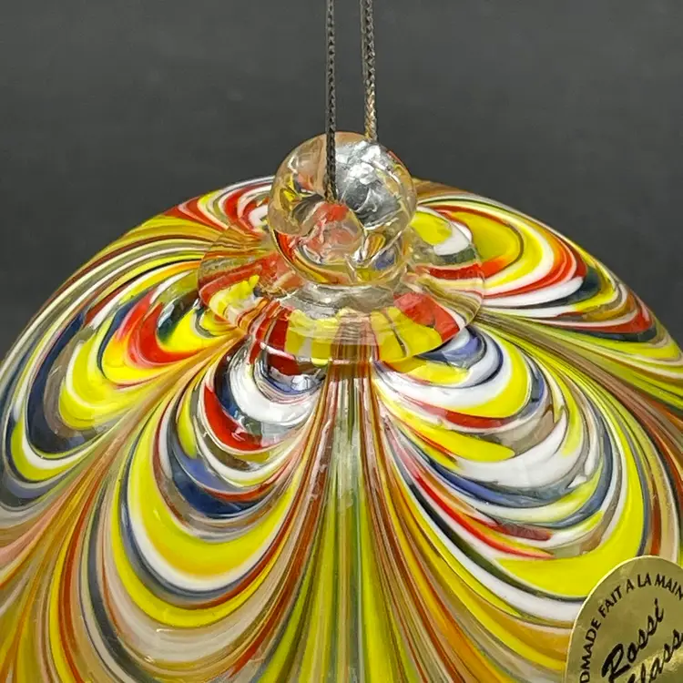 This is a handblown Rossi Niagara Falls Glass rainbow colored hanging ornament. Made in Canada. Measures approximately 3.14" in diameter. No chips or cracks.