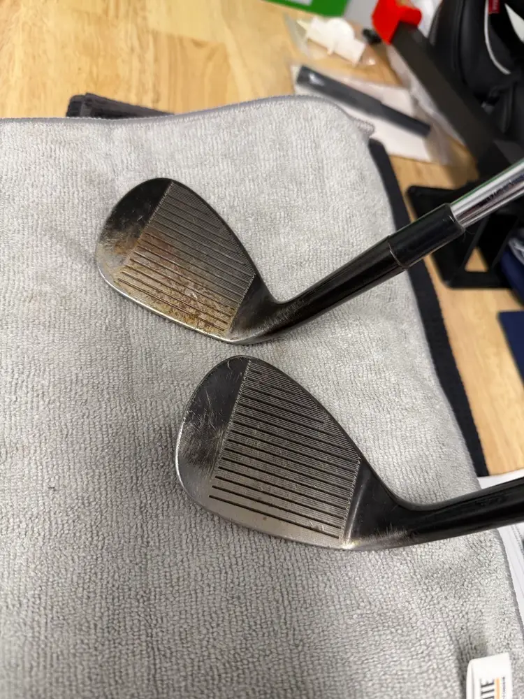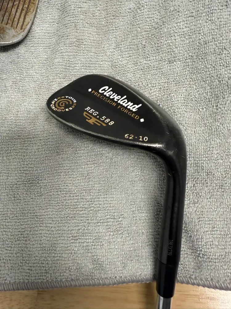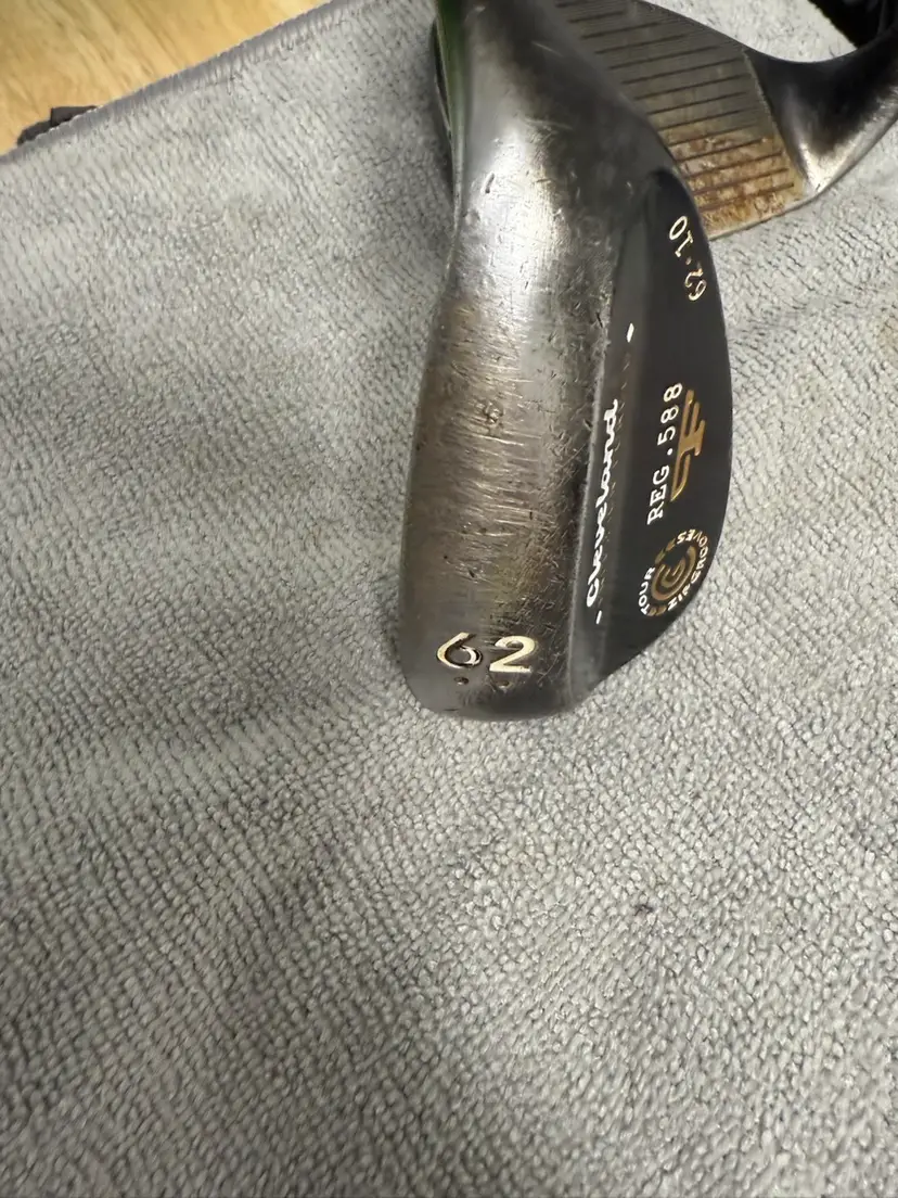 Cleveland 588 wedge set 56/62. These clubs are in rough shape please see all pics!!! They are shorter than standard with ping undersized grips. They were put together years ago for a junior golfer.