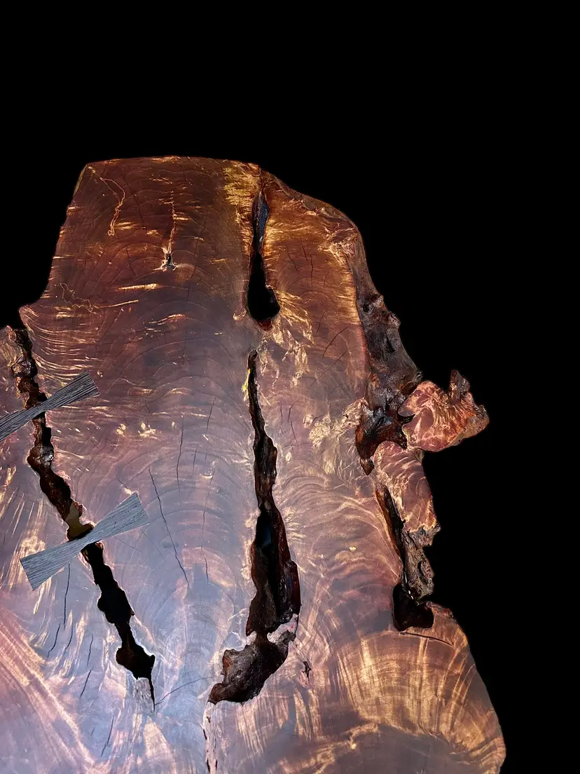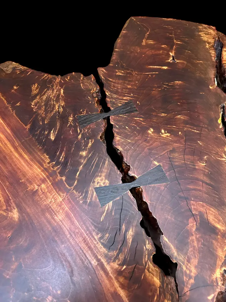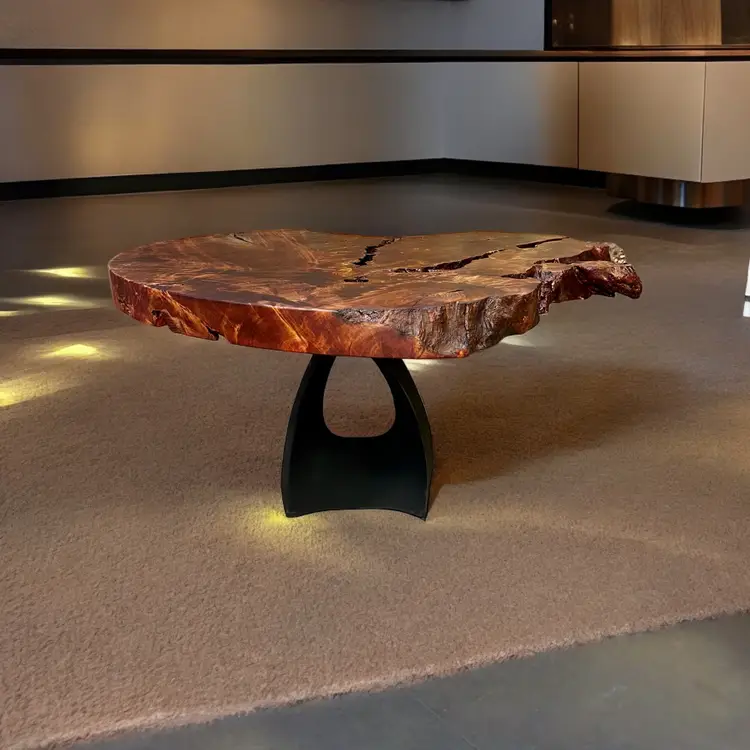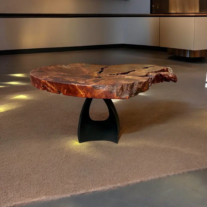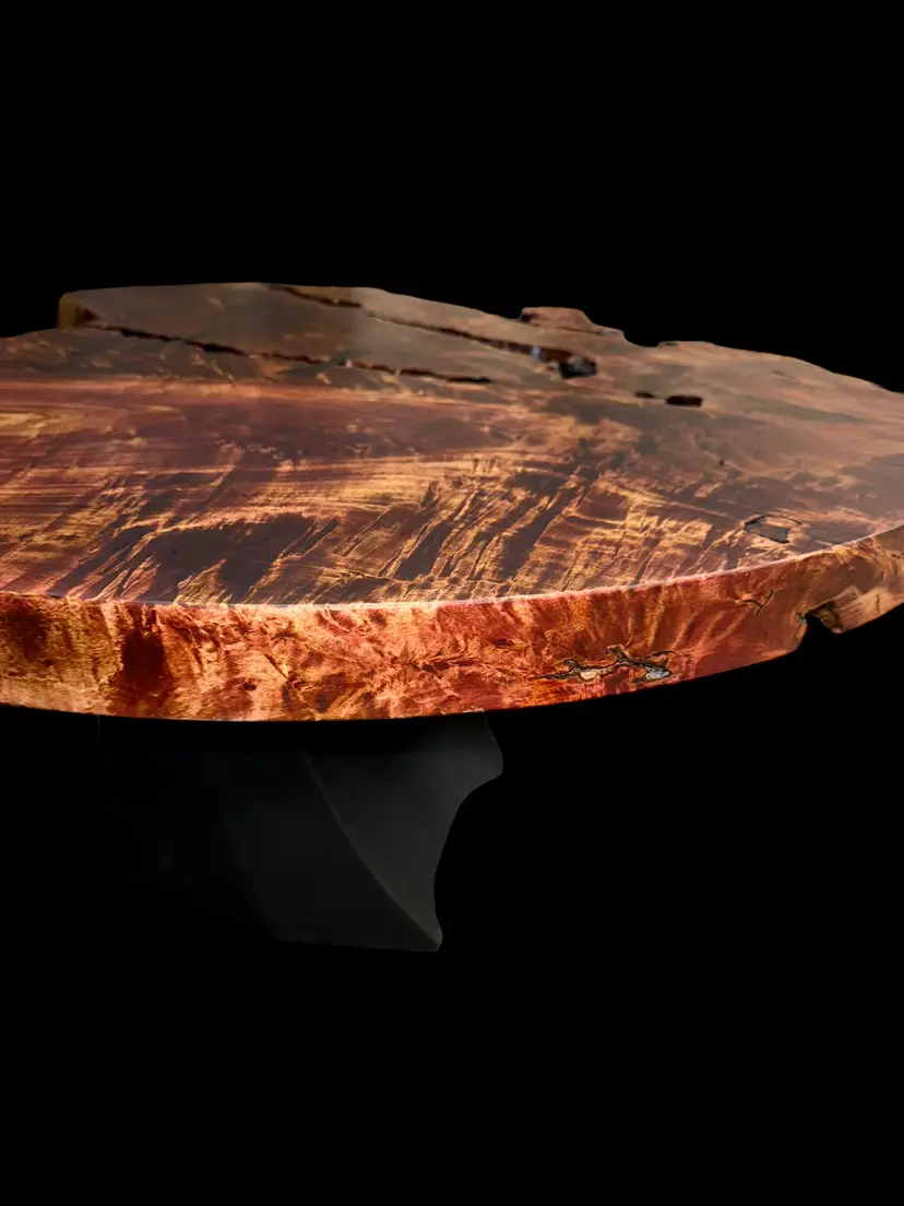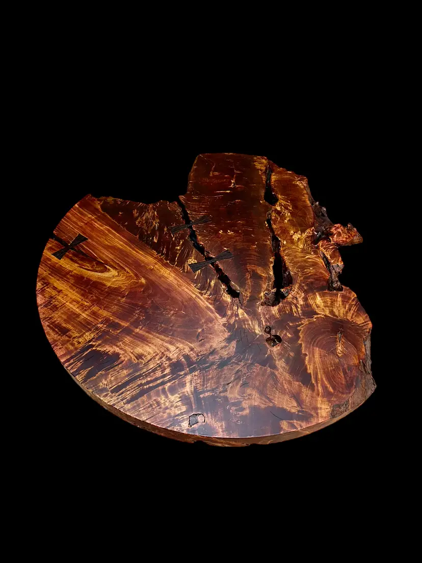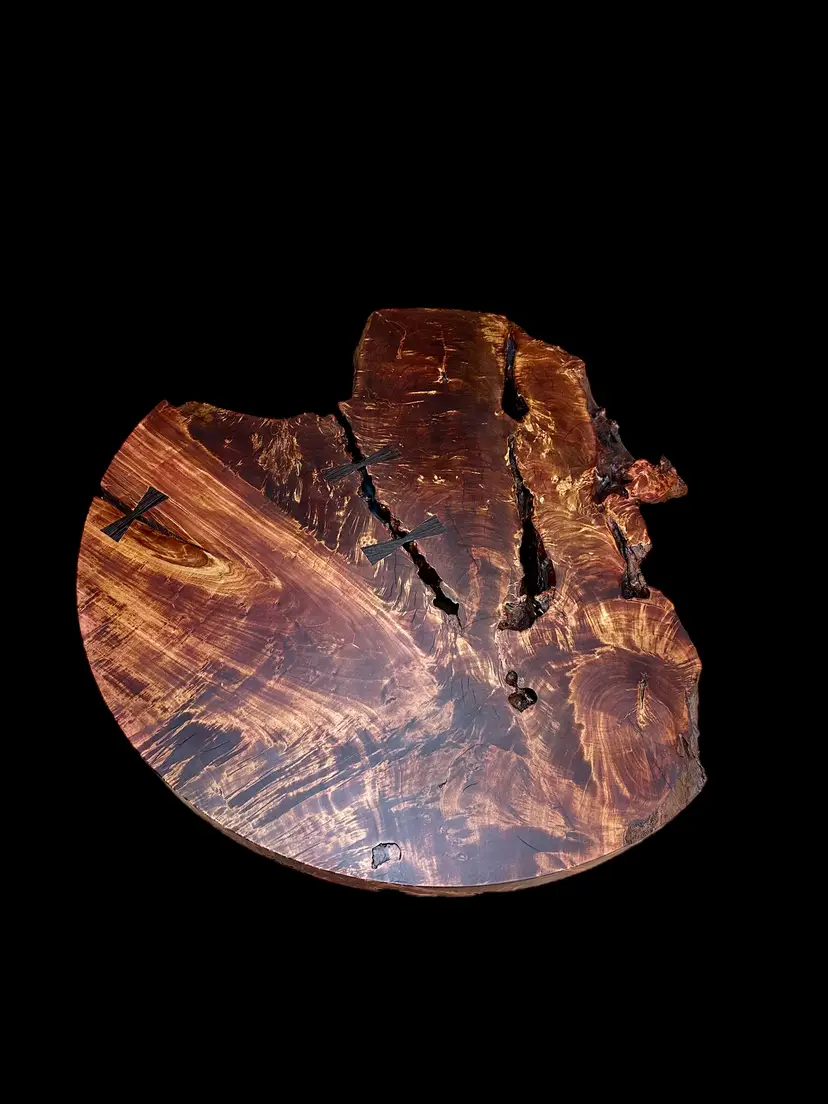 This piece is a 100% hand made and unique live edge table. All of our wood is sustainably sourced and salvaged. This piece is finished in a way that keeps its natural look but smooth and refined enough to make it the center piece of any room that it is in.