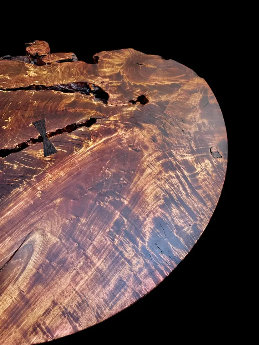 Made from a solid wood slab of Curly Maple and stabilized with hand cut Wenge bowties