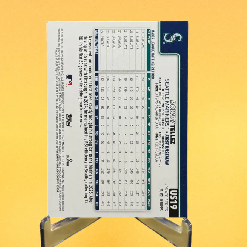 Rowdy Tellez 2025 Topps Update Series #US19 Holiday Orange Seattle Mariners