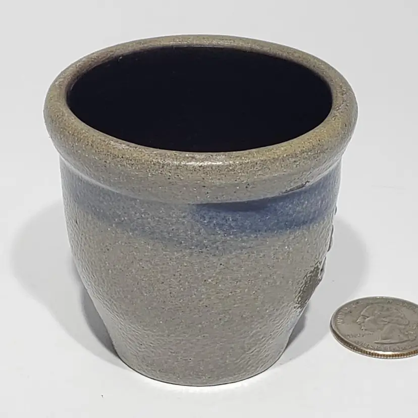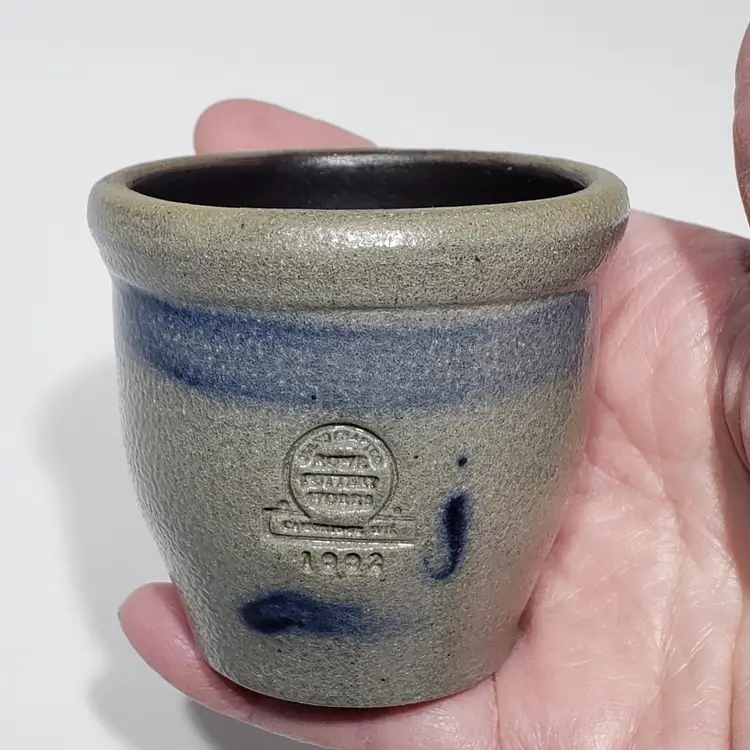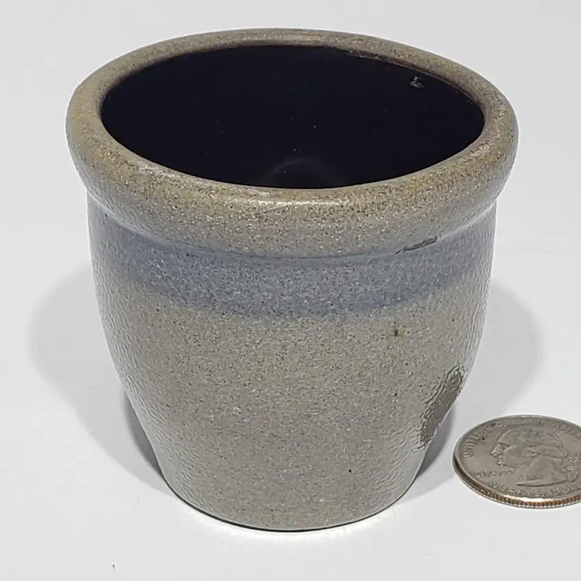 Rowe Pottery Works Mini Crock 1992 Hand Crafted Made in Cambridge, Wisconsin Impresses Stamp: Handcrafted Rowwe Pottery Works Cambridge Wisconsin 1992 Measures: 2.5" x 2.5" x 2.25" Pre-owned, but like new. No chips or cracks.