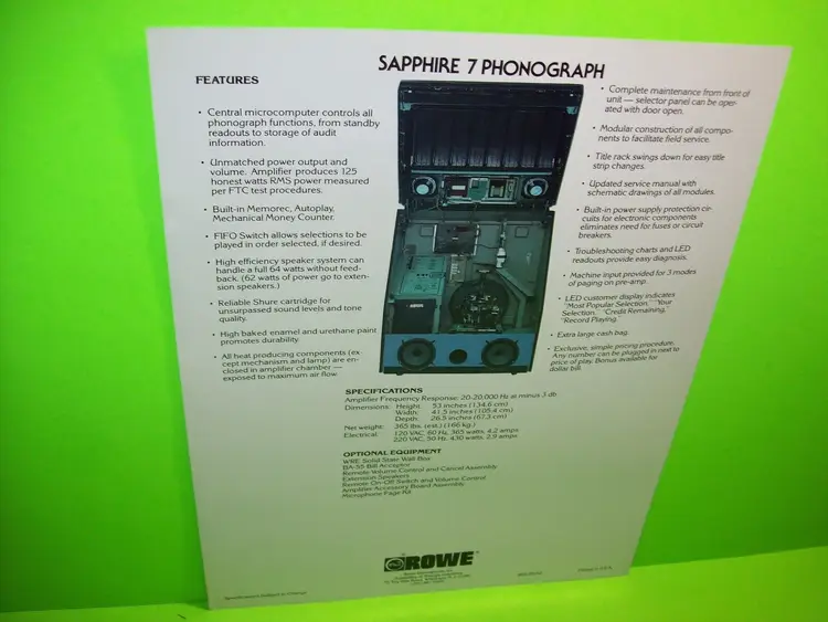 Brand: Rowe Original/Reproduction: Original Country/Region of Manufacture: United States Modified Item: No Jukebox: Flyer