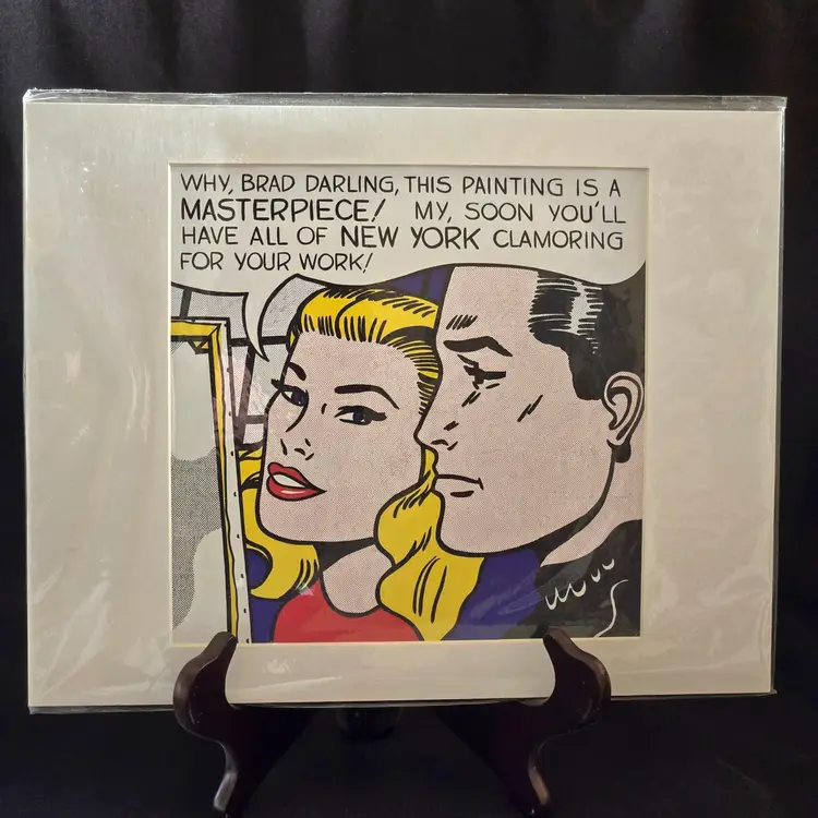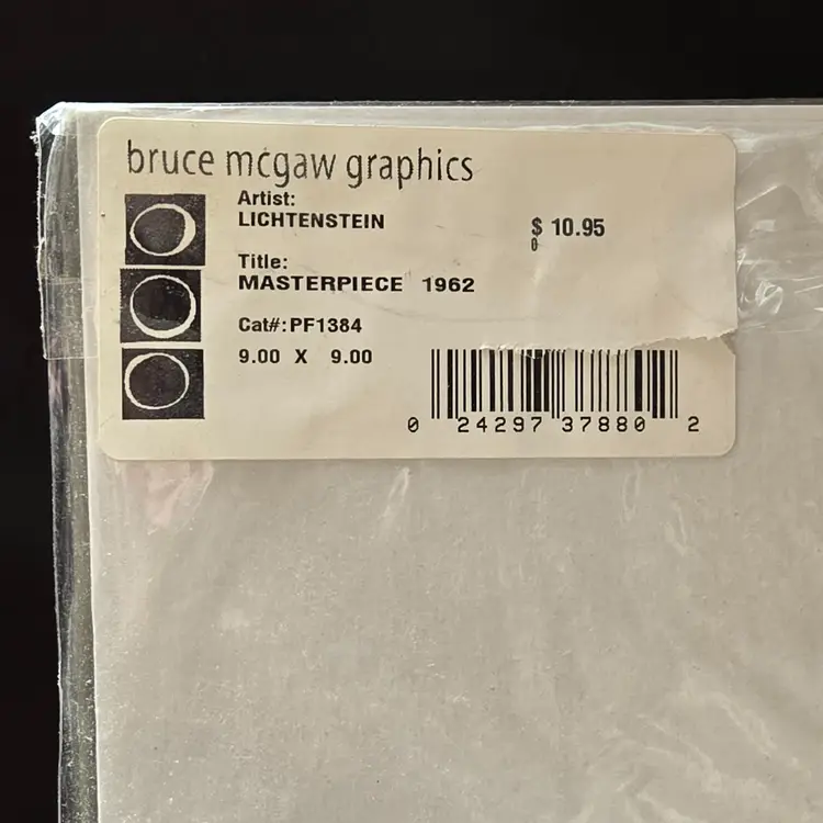 Roy Lichtenstein Bruce Mcgaw Graphics matted Pop Art Print "Masterpiece 1962" 11"×14". Used condition with plastic envelope having scratches, edgewear, rubbing, tears while the matted artwork shows to have a stain at tear in plastic. Please view all the photos and read the entire item description and please ask any questions prior to purchase when possible.