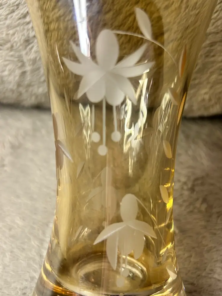 Beautiful Royal Albert Amber Lustre Hand Cut Floral Etched Bud Vase