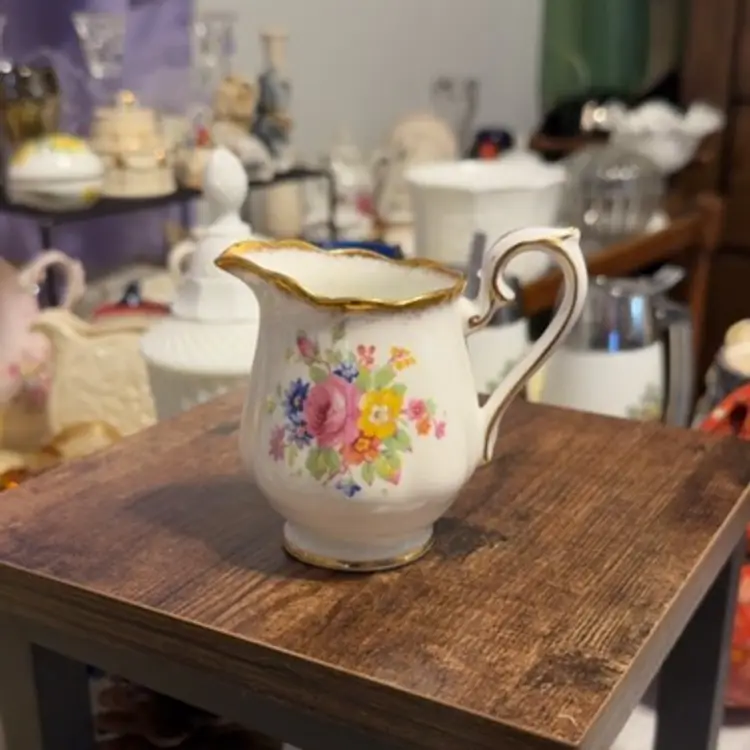 This is a vintage small pitcher by Royal Albert with the pattern "Old Country Roses" and luxurious gold trim all around. It is approx. 3 in tall.
