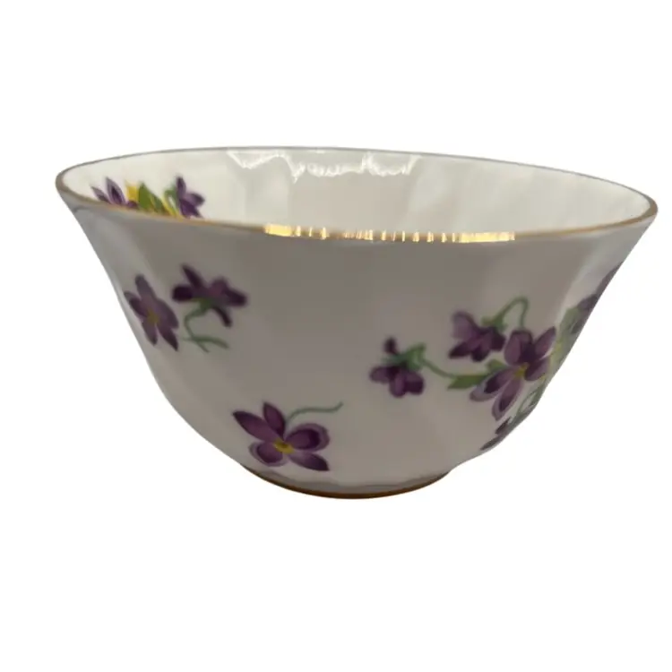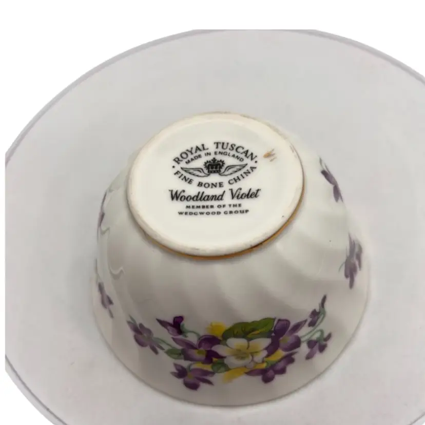 WOODLAND VIOLET FINE BONE CHINA OPEN SUGAR/TRINKET BOWL. IT IS IN EXQUISITE CONDITION A BEAUTIFUL ADDITION TO A TEA PARTY TABLE OR A LITTLE TRINKET DISH FOR RINGS. GREAT GIFT FOR THE PERSON WHO APPRECIATES ELEGANT AND NOSTALGIC HOMEWARE.