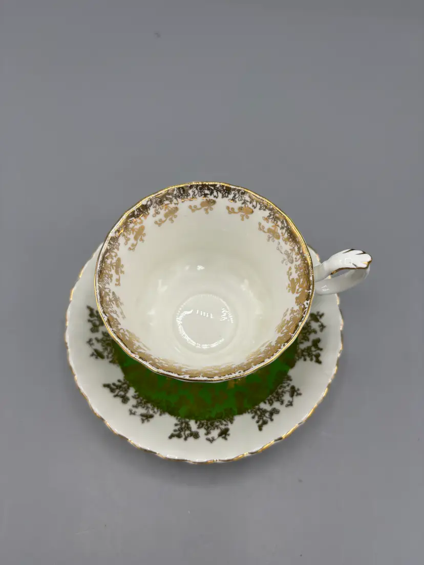 Elevate your tea service with this exquisite Royal Albert teacup and saucer from the "Regal" collection. Crafted with fine porcelain and adorned with elegant detailing, this timeless piece brings sophistication to any table setting. Perfect for daily enjoyment or special occasions, it's a cherished addition to any china collection.