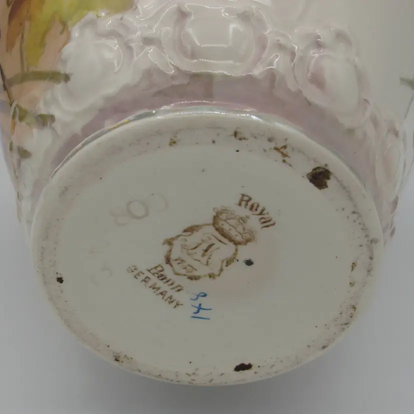 Bottom of vase is embossed with "800" or possibly "2800" as well as a diamond with "8" in the middle. Hand-painted on the bottom is "148". Age of this vase is not known.