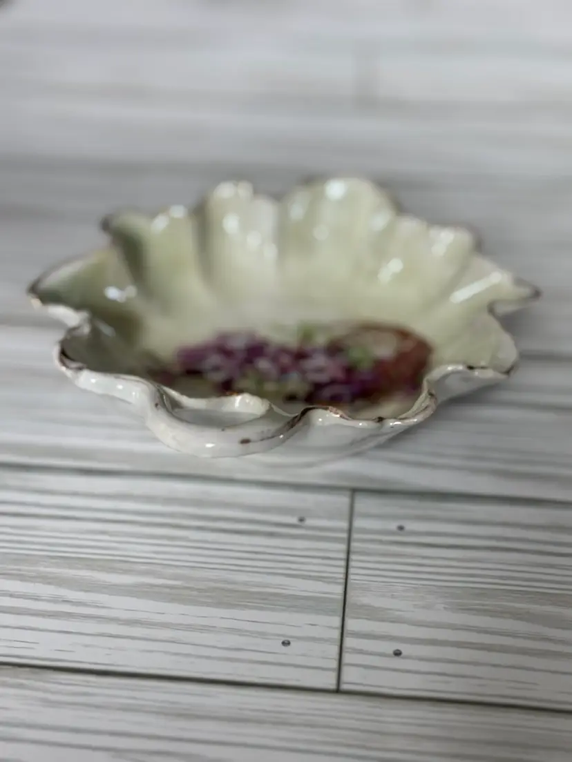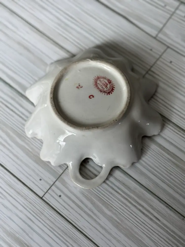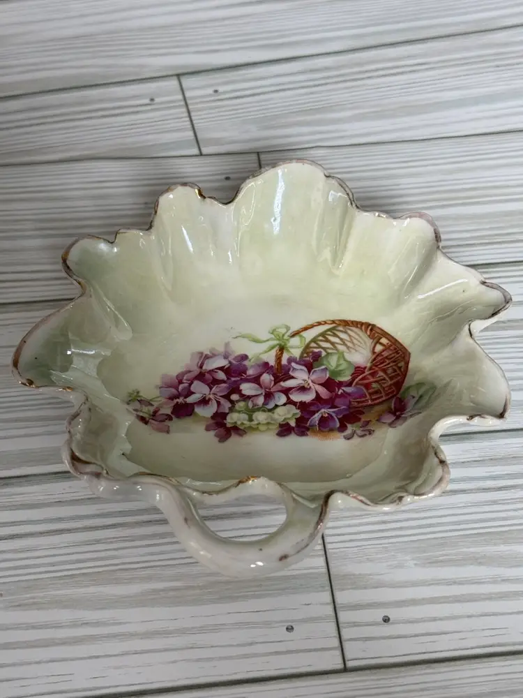 Pale green gold leaf edging leaf shape platter by Royal Bruxomia vintage