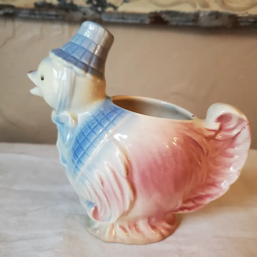 The sweetest little 40's chick creamer. Royal Copley Spaulding. No chips. 4 3/4" t. 5" l. 3" w.