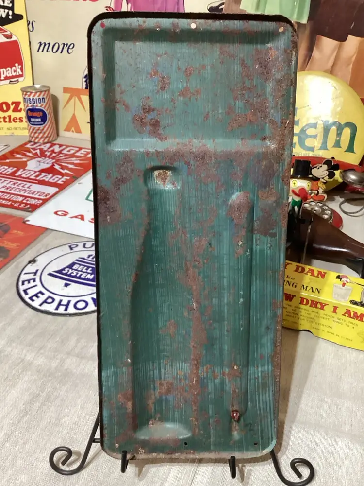 Heavily embossed. Thermometer does not work but glass is there. 13.5”x6”
