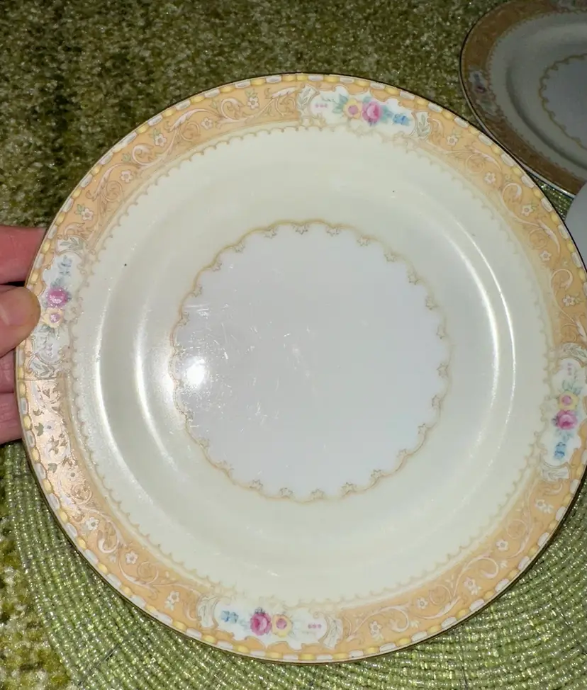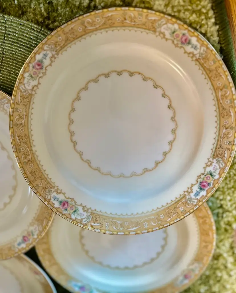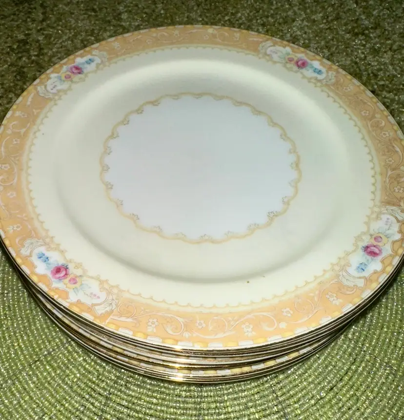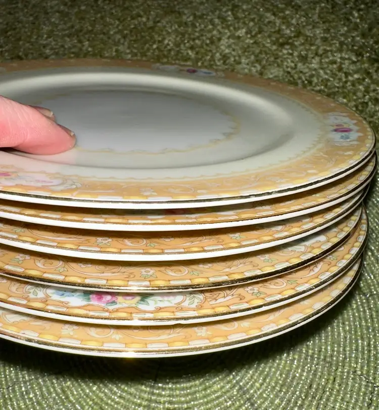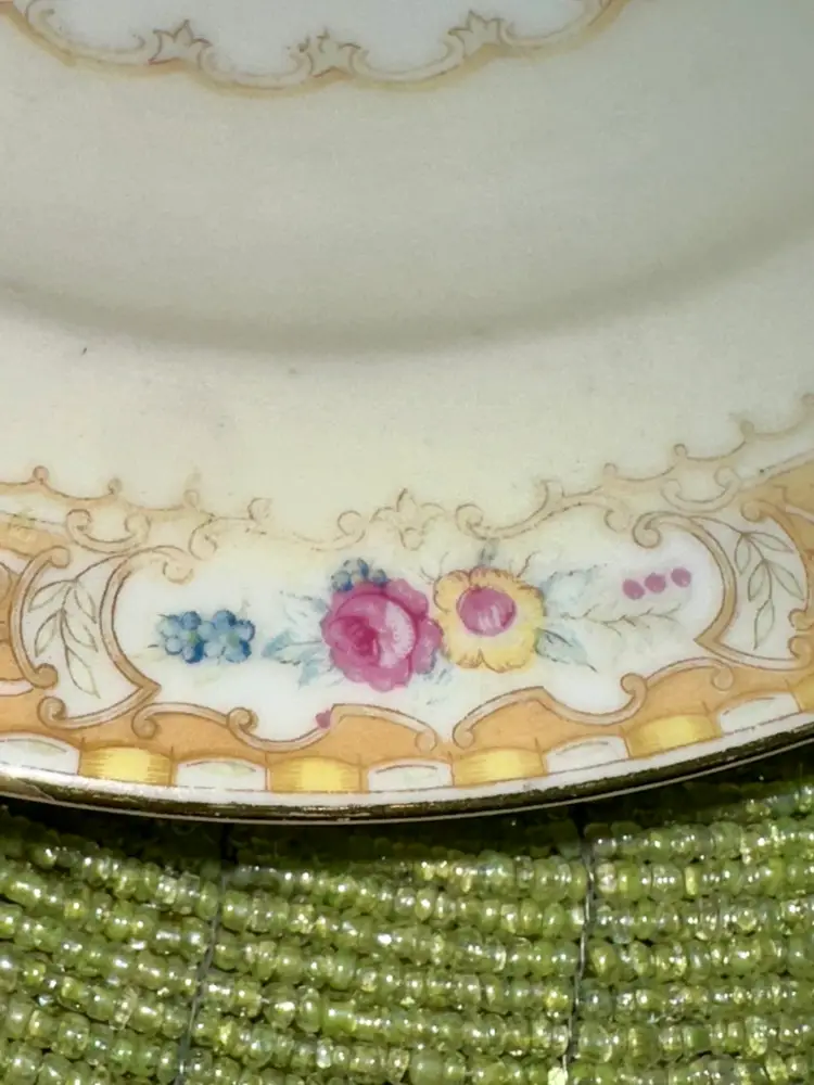 I just love these 7.5” Royal Derby china plates- the colors are perfect for spring and summer! These vintage plates, made in Japan, would be perfect for your next gathering- use them for appetizers or desserts, or as intended as a bread and butter plate. I love the idea of mix and match dishes throughout a meal. The set of six china plates shows no flaws or chips. They are rimmed in gold.