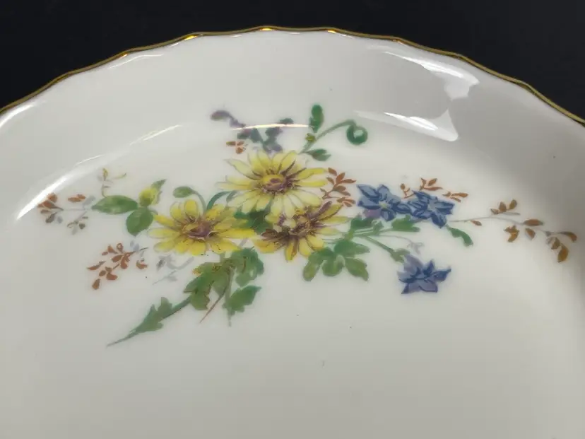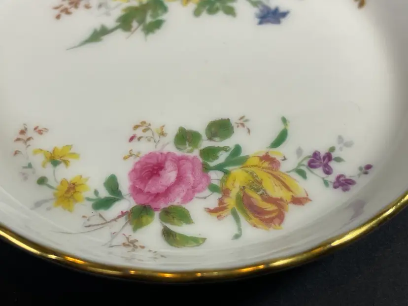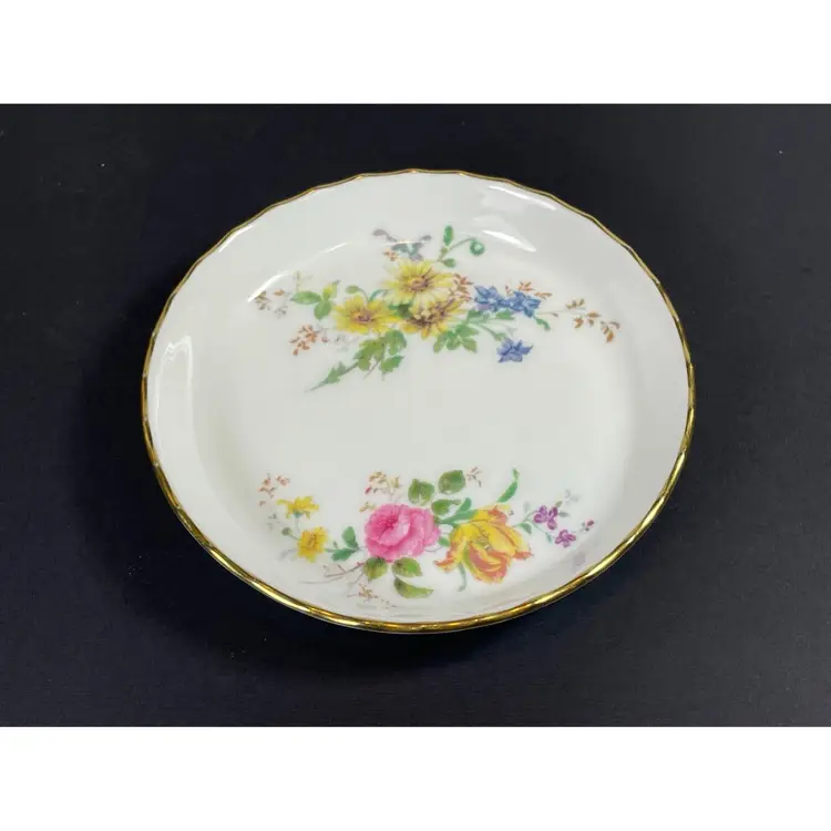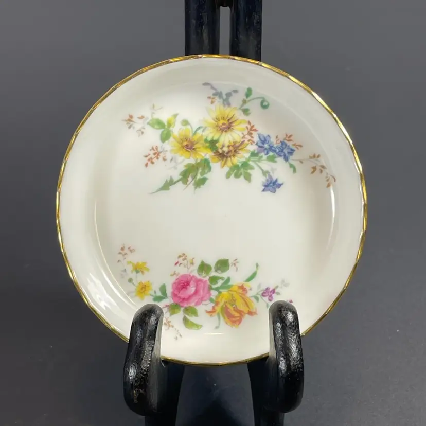 Pretty, floral trinket dish with gold edge. Made in England. Marked H4802