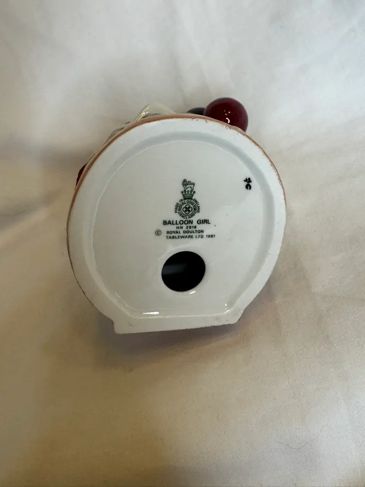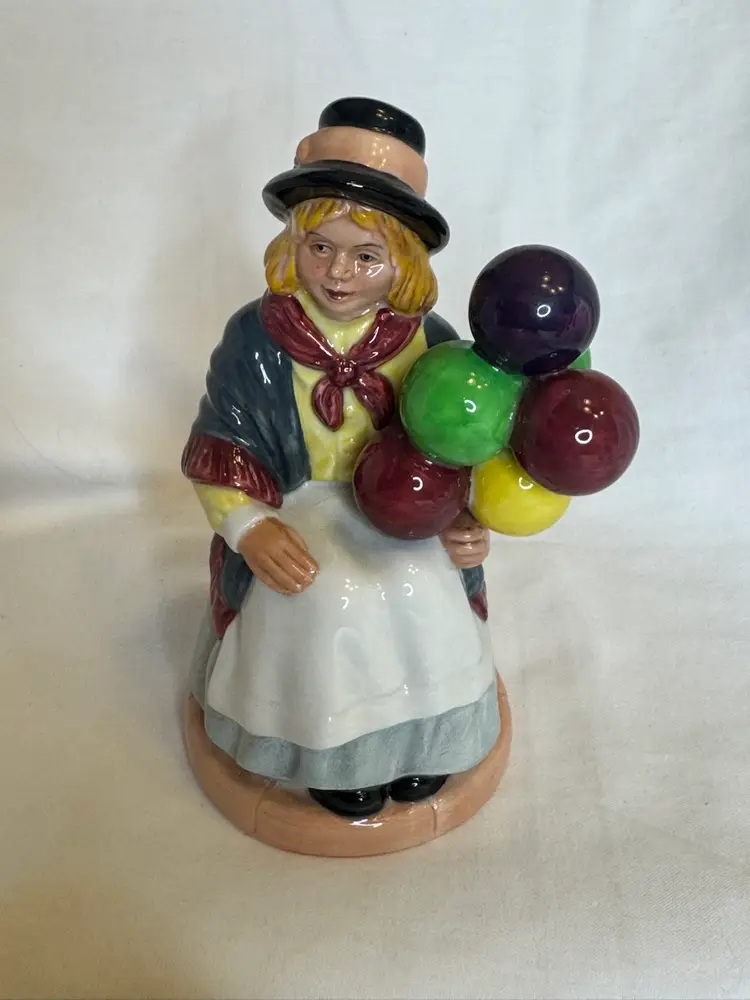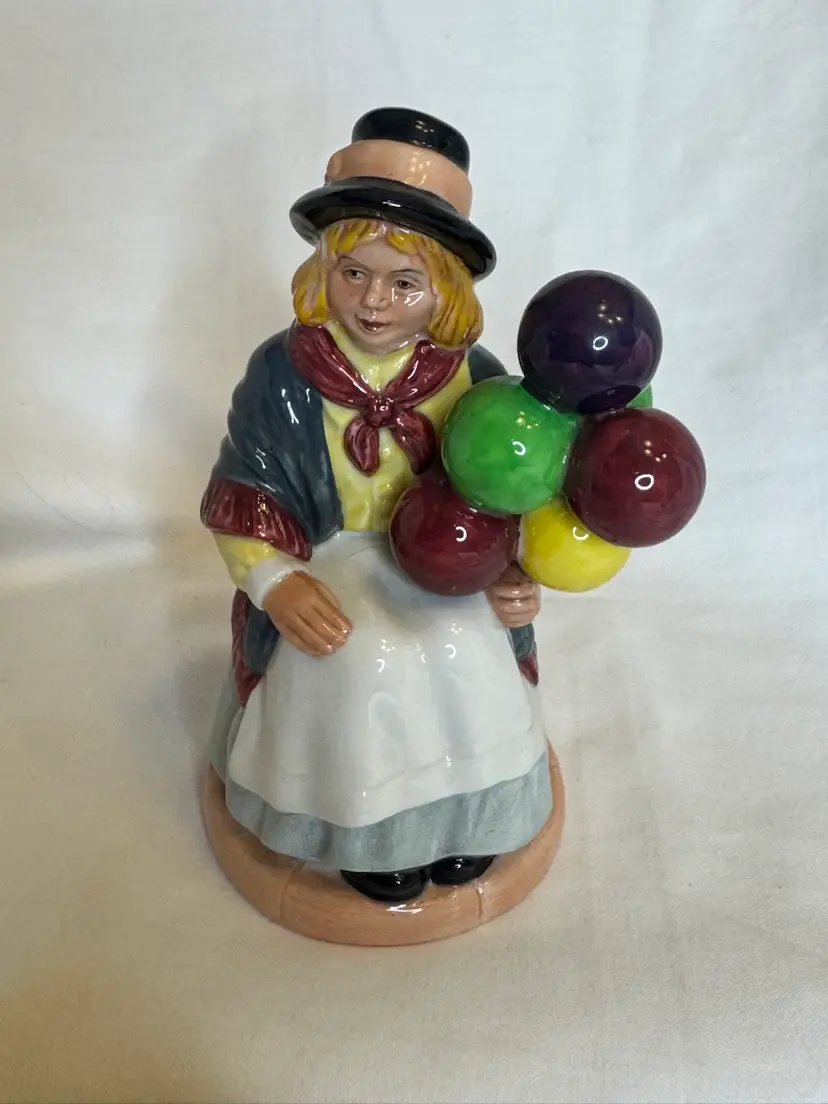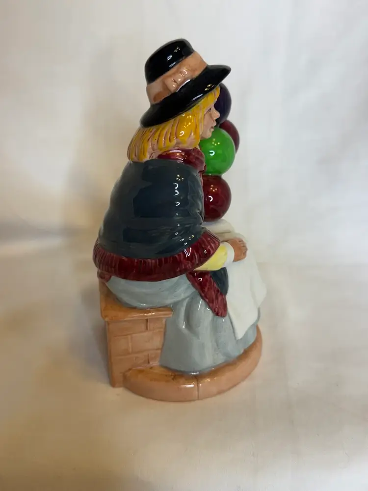 This Royal Doulton "Balloon Girl" figurine, model number HN2818 is a limited edition piece from 1981, representing a street balloon seller. It is 6” in height and made of hand painted fine bone china.