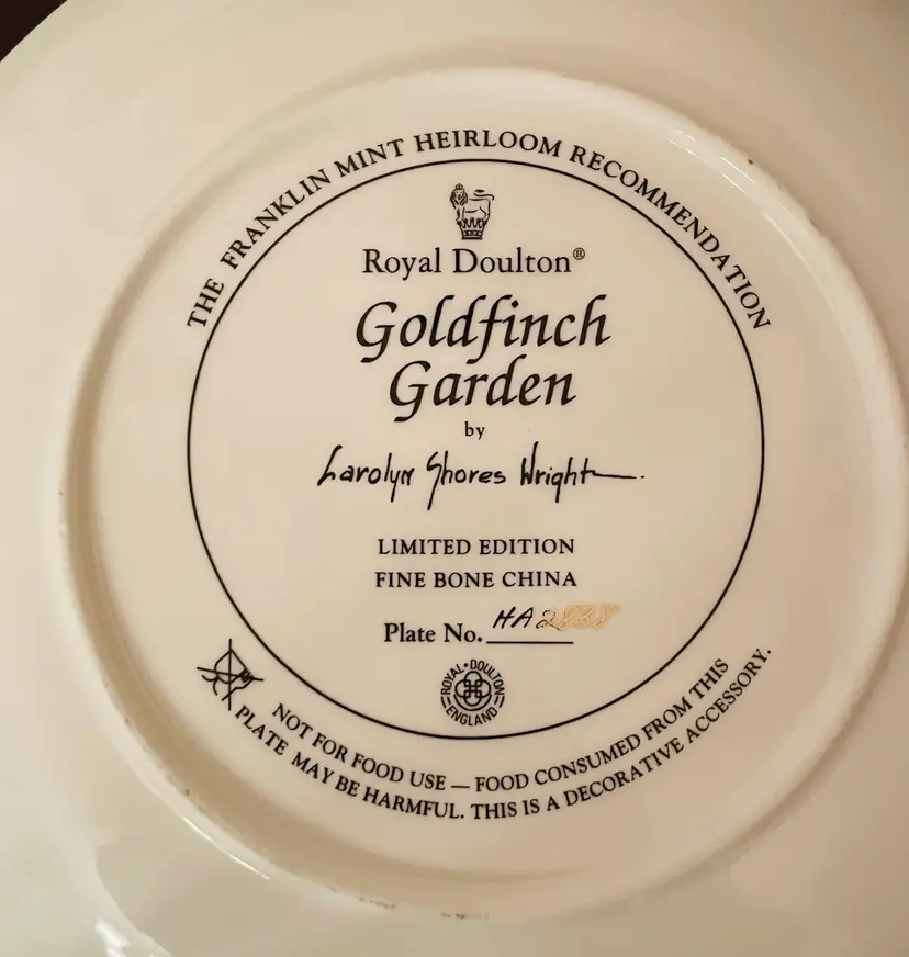 Details • Maker: Royal Doulton • Series: Franklin Mint Heirloom Recommendation • Material: Fine Bone China • Origin: Made in England • Diameter: approx. 8 inches each • Finish: Gold gilt rim • Condition: Like new • Use: Decorative plates only (not food safe)