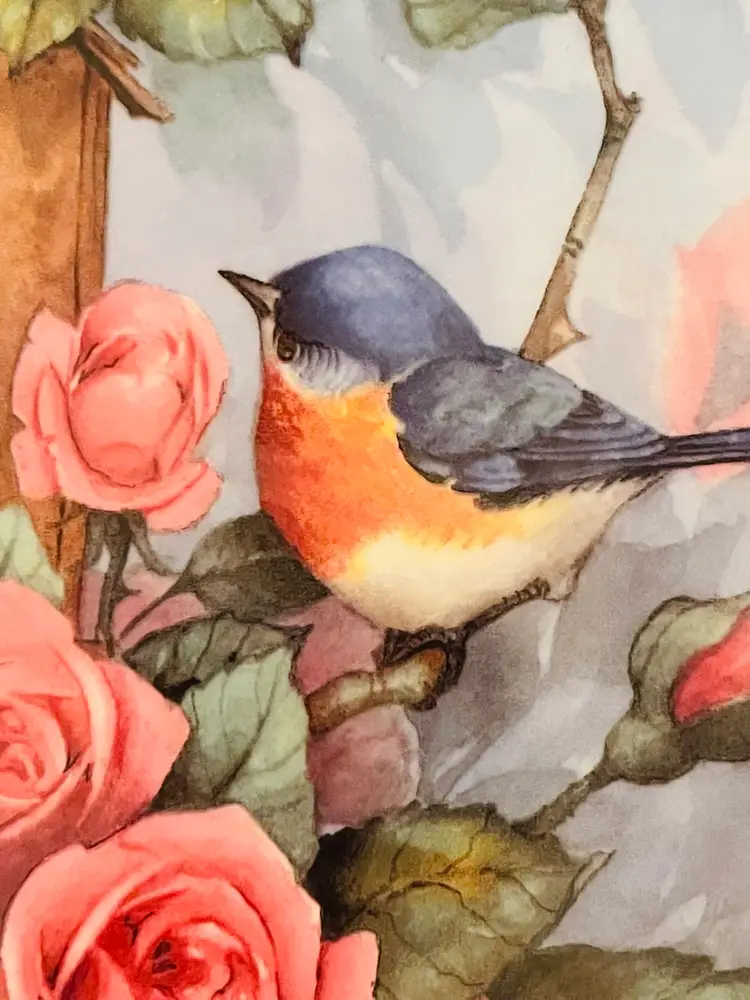 Included in this set: • Settling In – birds, roses, and birdhouse • Goldfinch Garden – goldfinches with flowering branches and birdhouse