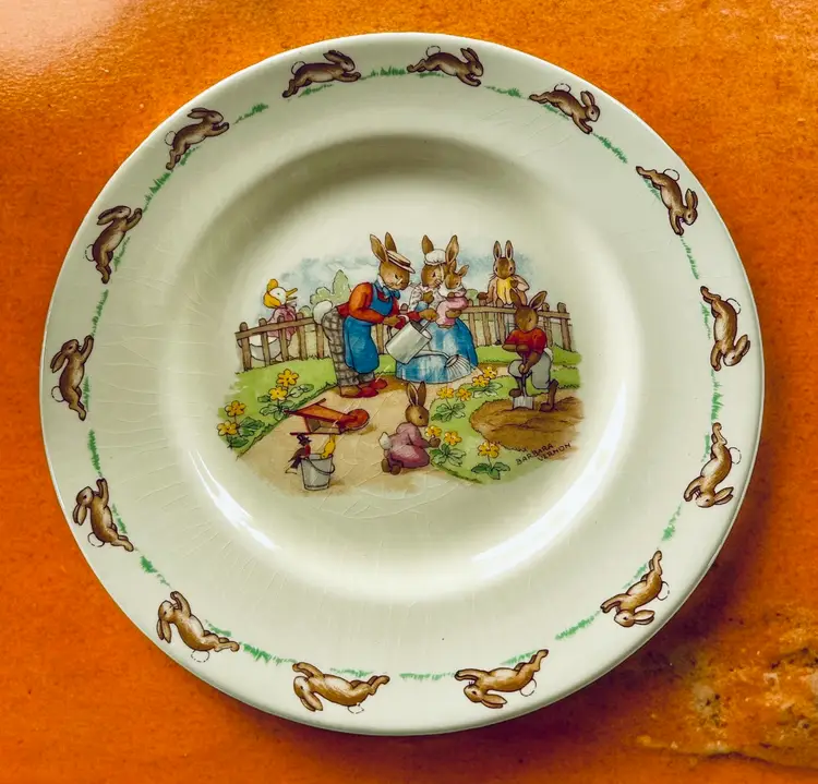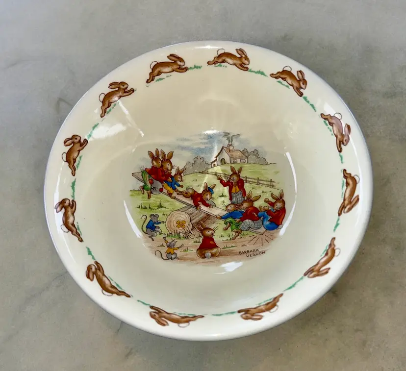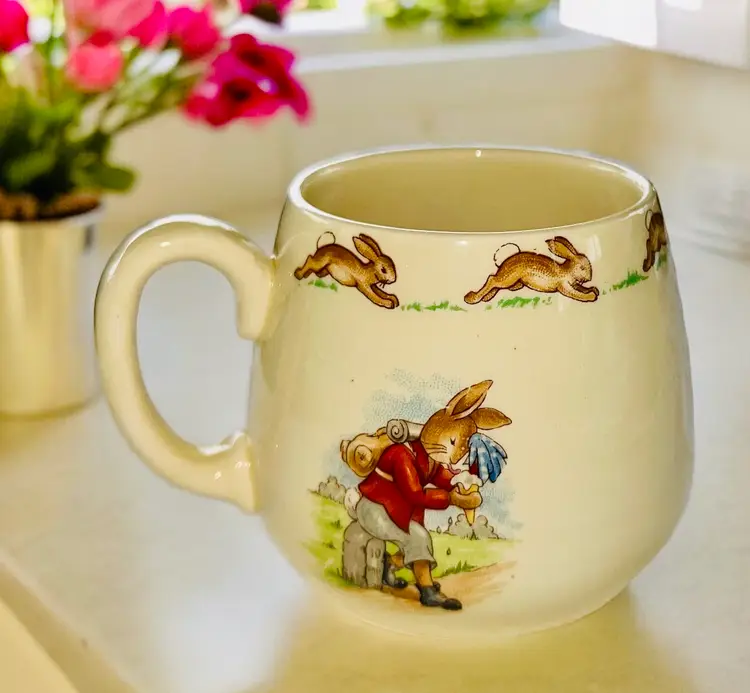 Hand wash only to keep this mid-20th century original in the best condition. The bunnykins theme and country style are sure to bring a smile to anyone's face. A painted backstamp and 11.9-ounce weight add to the charm of this Bunnykins product line piece.